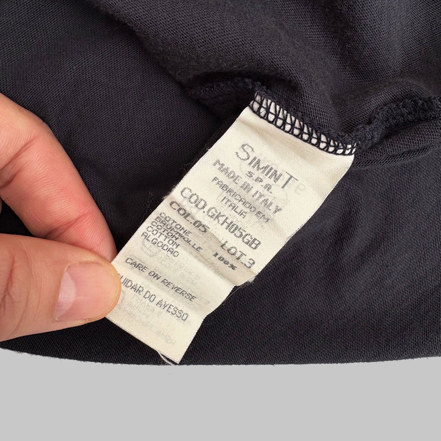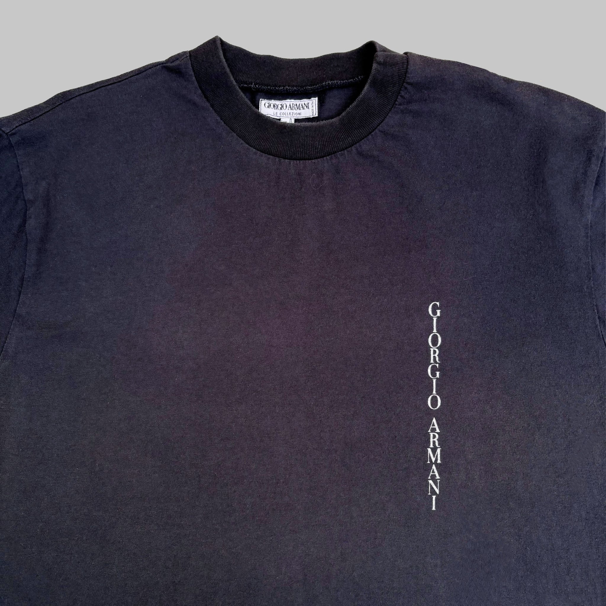 Very rare 1990's vintage Giorgio Armani 'Le Collezioni' designer sleeve t-shirt, in dark navy cotton with logos printed vertically on the front, very nice piece. Made in Italy
