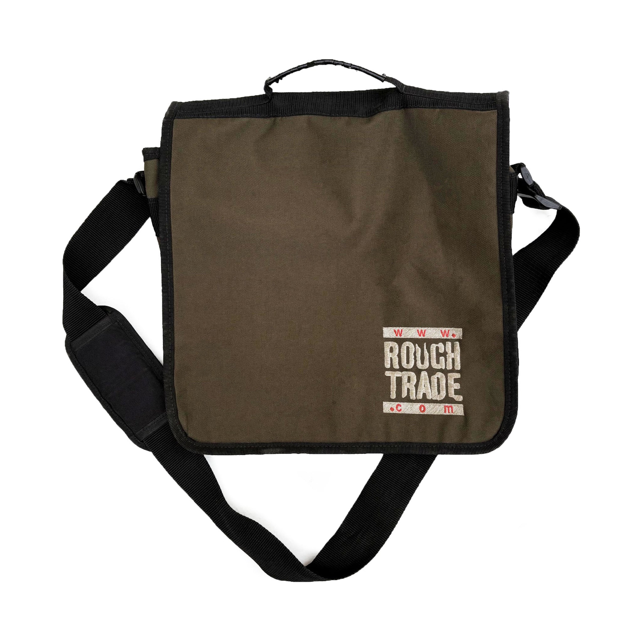 Original early 2000's Rough Trade records promo vintage messenger/records bag, in khaki green canvas with graphic logo embroidered on the front, scratch velcro and hand handle, adjustable strap, rare piece in good conditions. A few small signs of wear.