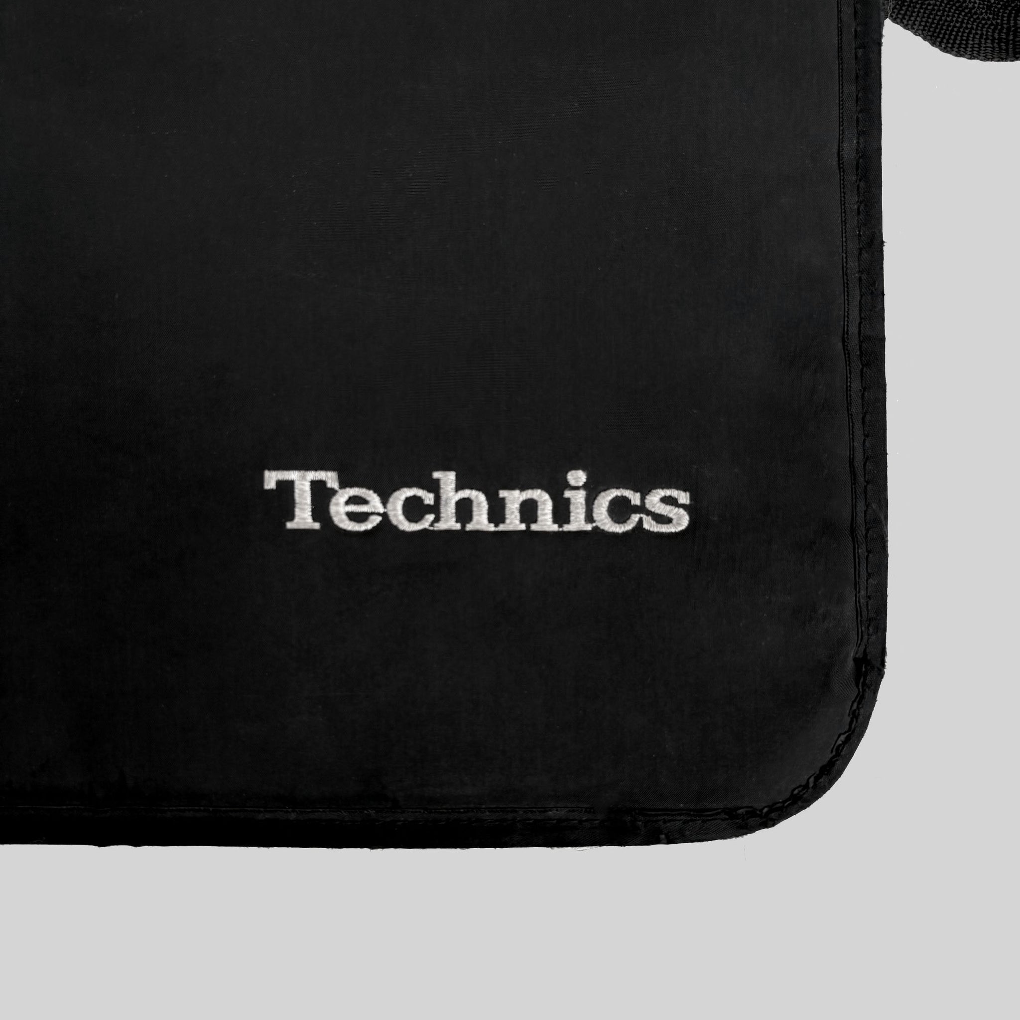 Nice 1990's authentic vintage Technics crossbody DJ record messenger bag, in black canvas with adjustable strap and fold over, logos embroidered on the front, great attention to details, multiple pockets, beautiful piece. some signs of wear on the corners.