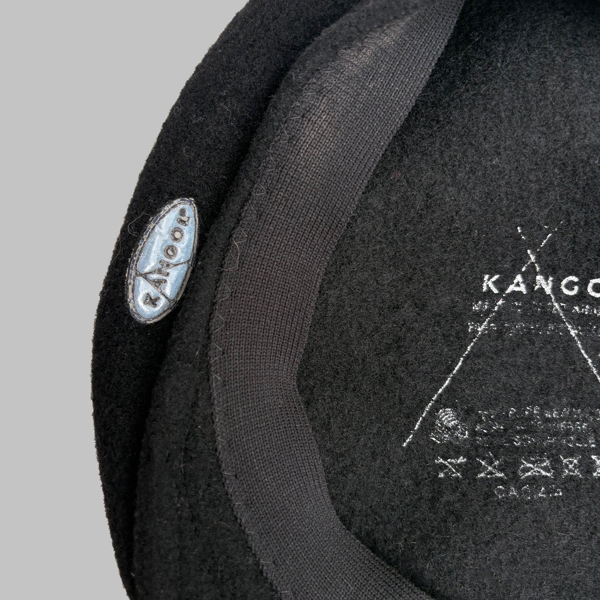 Extremely rare 1997 Quentin Tarantino movie Jackie Brown promo vintage Kangol newsboy cap hat, in black felt with movie graphic logo embroidered and Kangol logo on the back and on the side. Made in Great Britain
