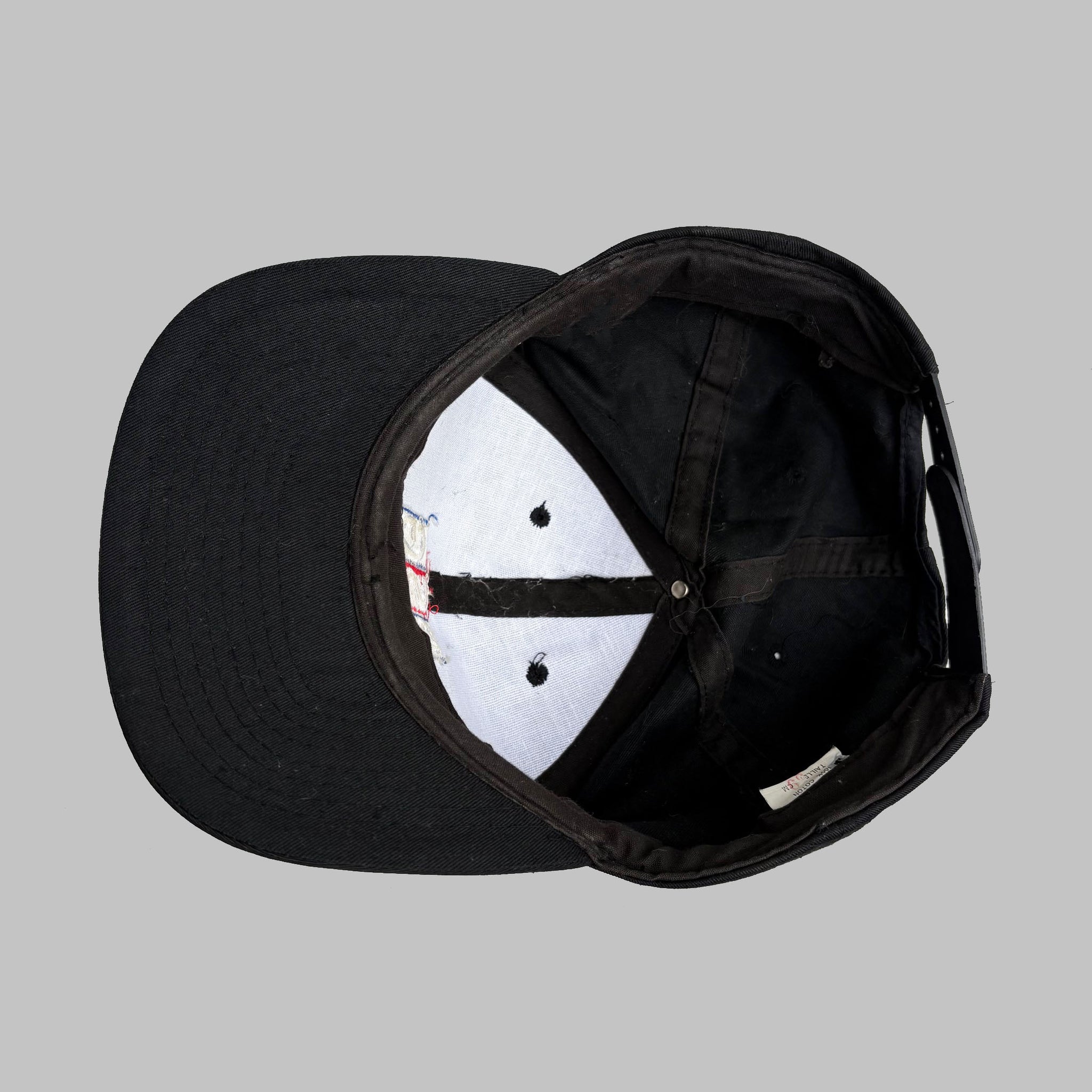 Rare vintage 1990's PSG Paris Saint-Germain vintage snapback cap, in black with 90s club logo embroidered on the front, black adjustable strap.