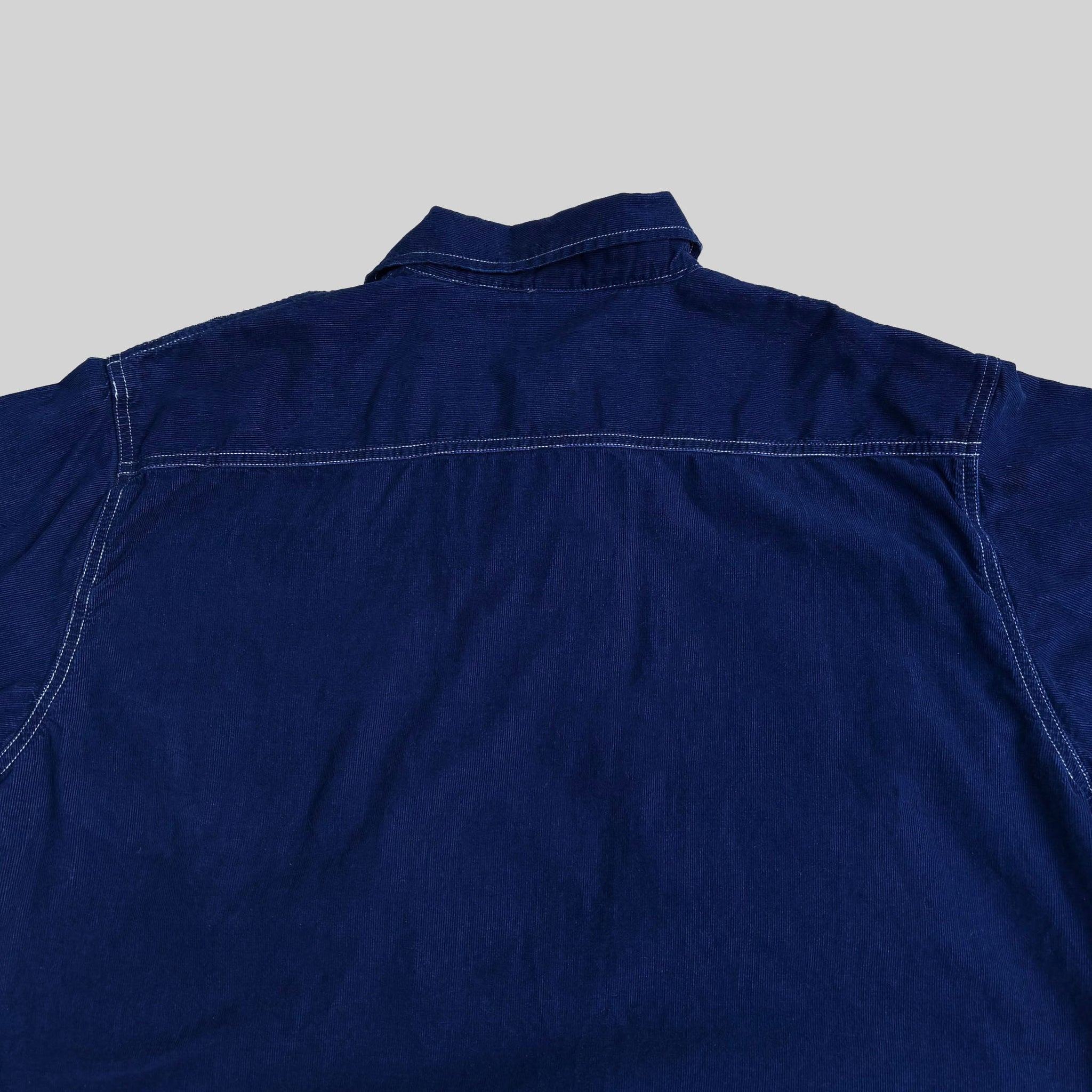 Superb original early 1990's Marithé François Girbaud half zip vintage long sleeve corduroy shirt, in navy blue with beautiful details. Made in Hong Kong