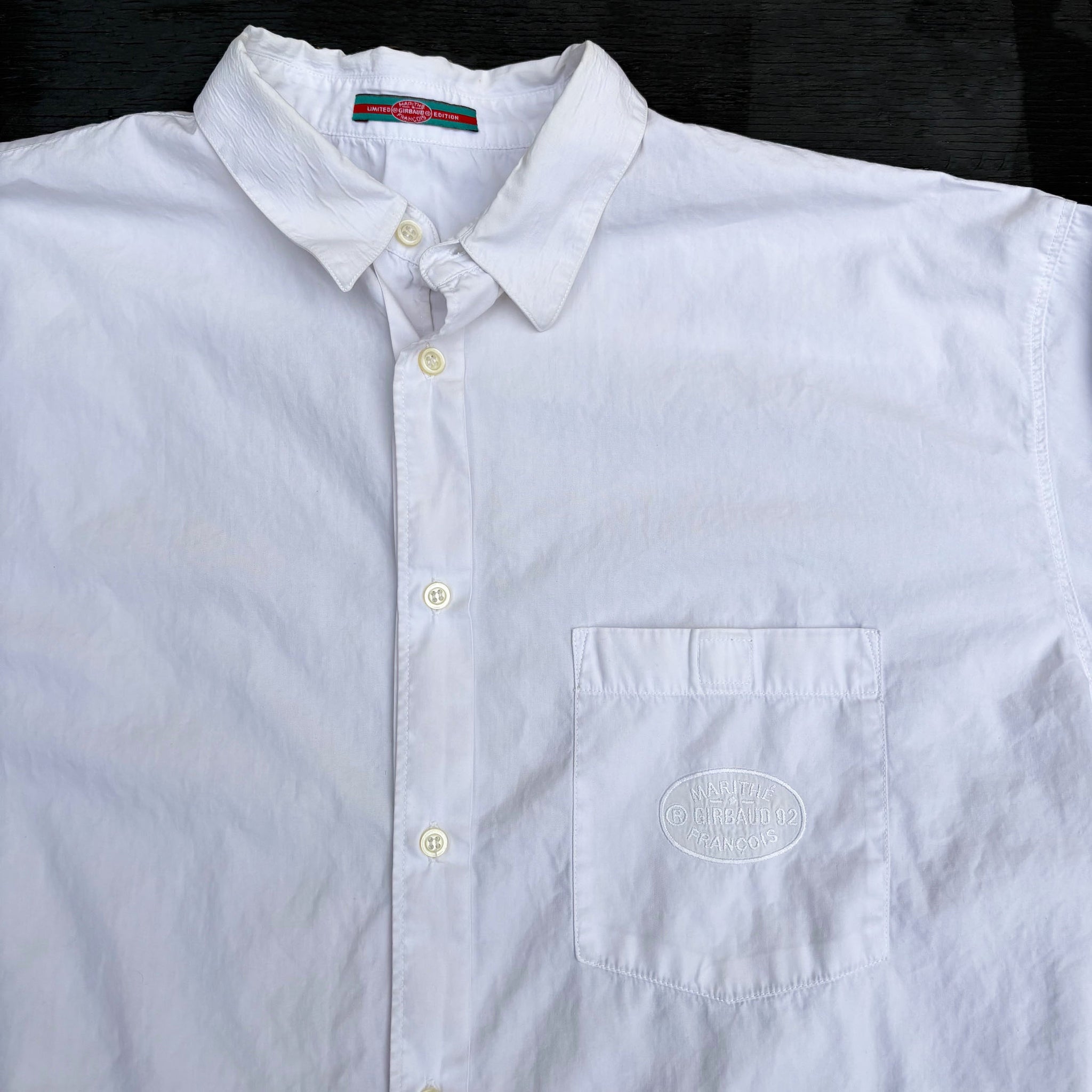 Crazy 1992 vintage Girbaud 'Cherries' graphic long sleeve button up shirt, in white cotton with white logo embroidered on the chest pocket and beautiful design printed on the back. Extremely rare piece, beautiful details. Made in France.