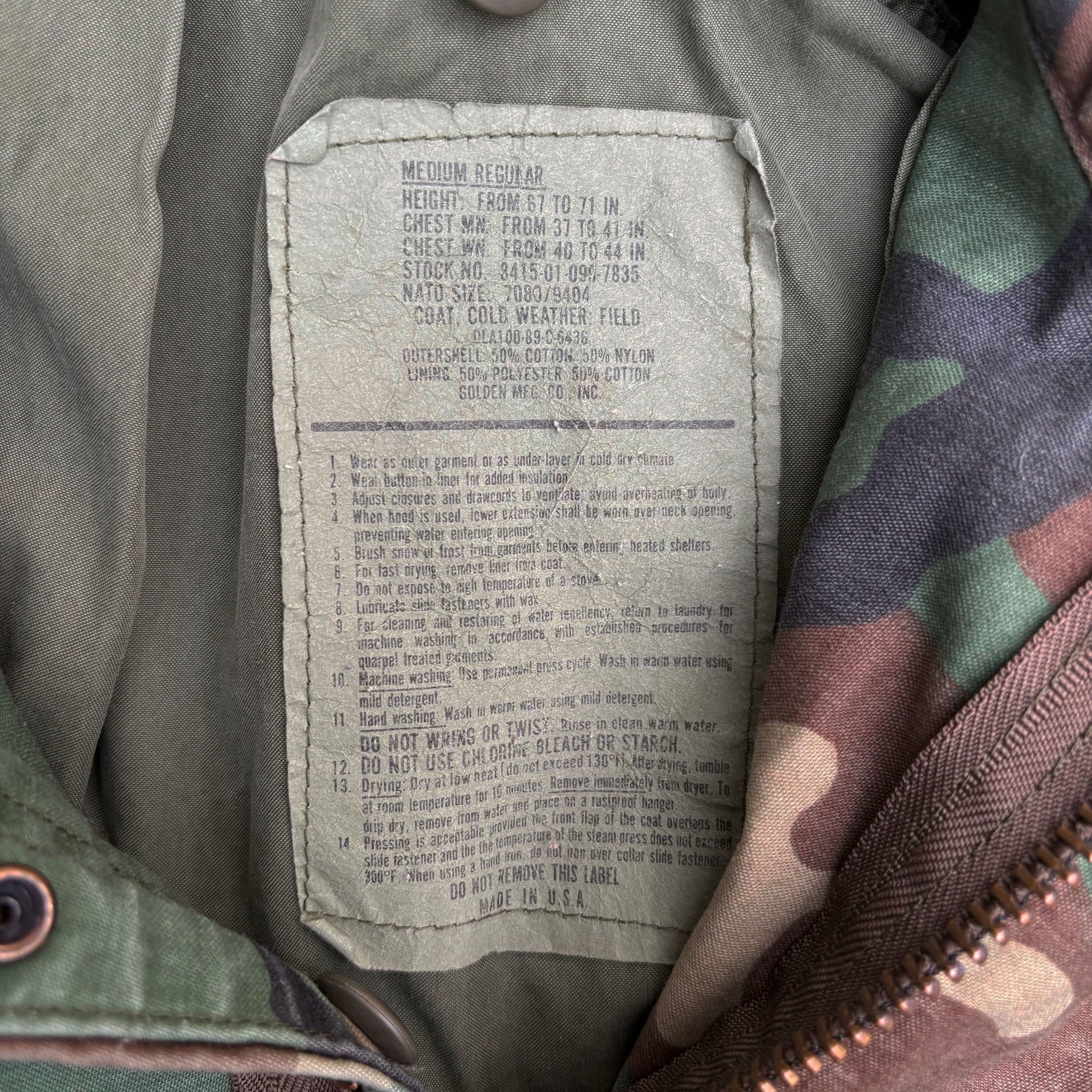 Rare 1989 original US Army issued M65 vintage field parka jacket, in woodland camouflage pattern with great detail, timeless fit. Made in USA