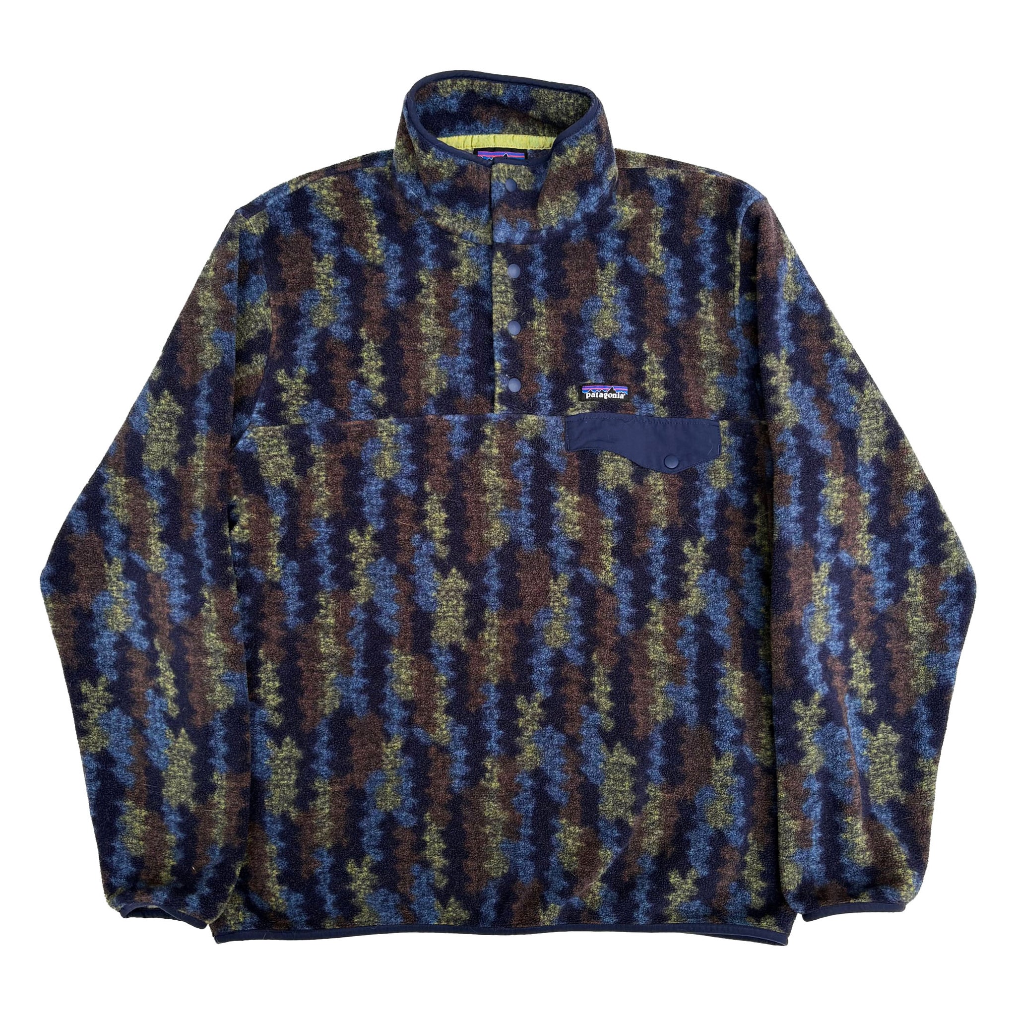 Beautiful original Patagonia 'Synchilla' snap-t pullover fleece jacket, in great pattern with embroidered label on the chest, pressure buttons, half zip, great quality, in perfect conditions.