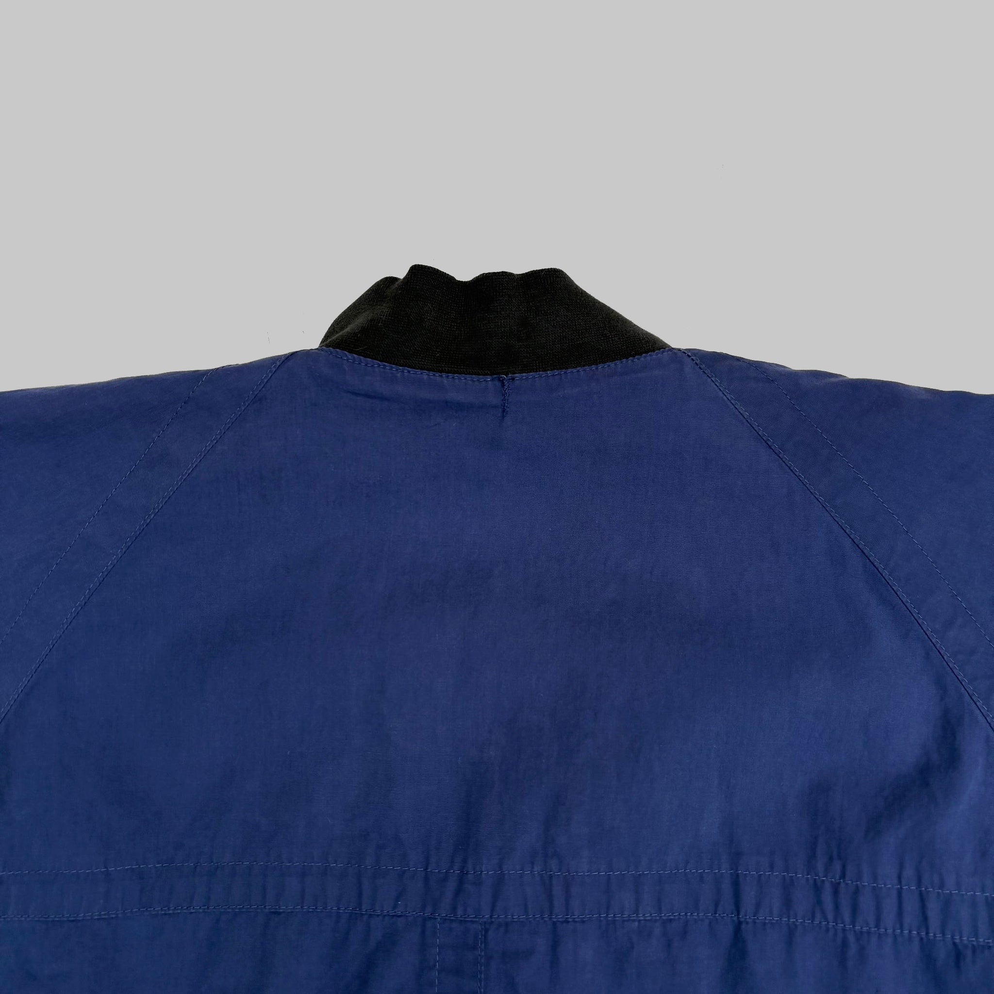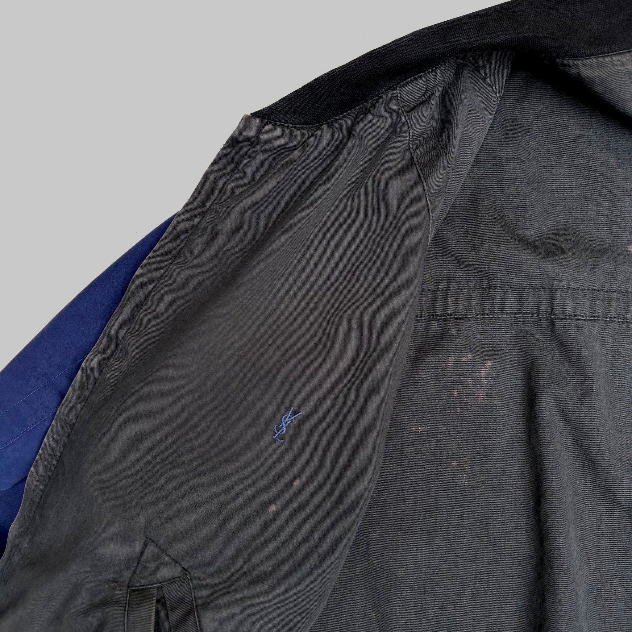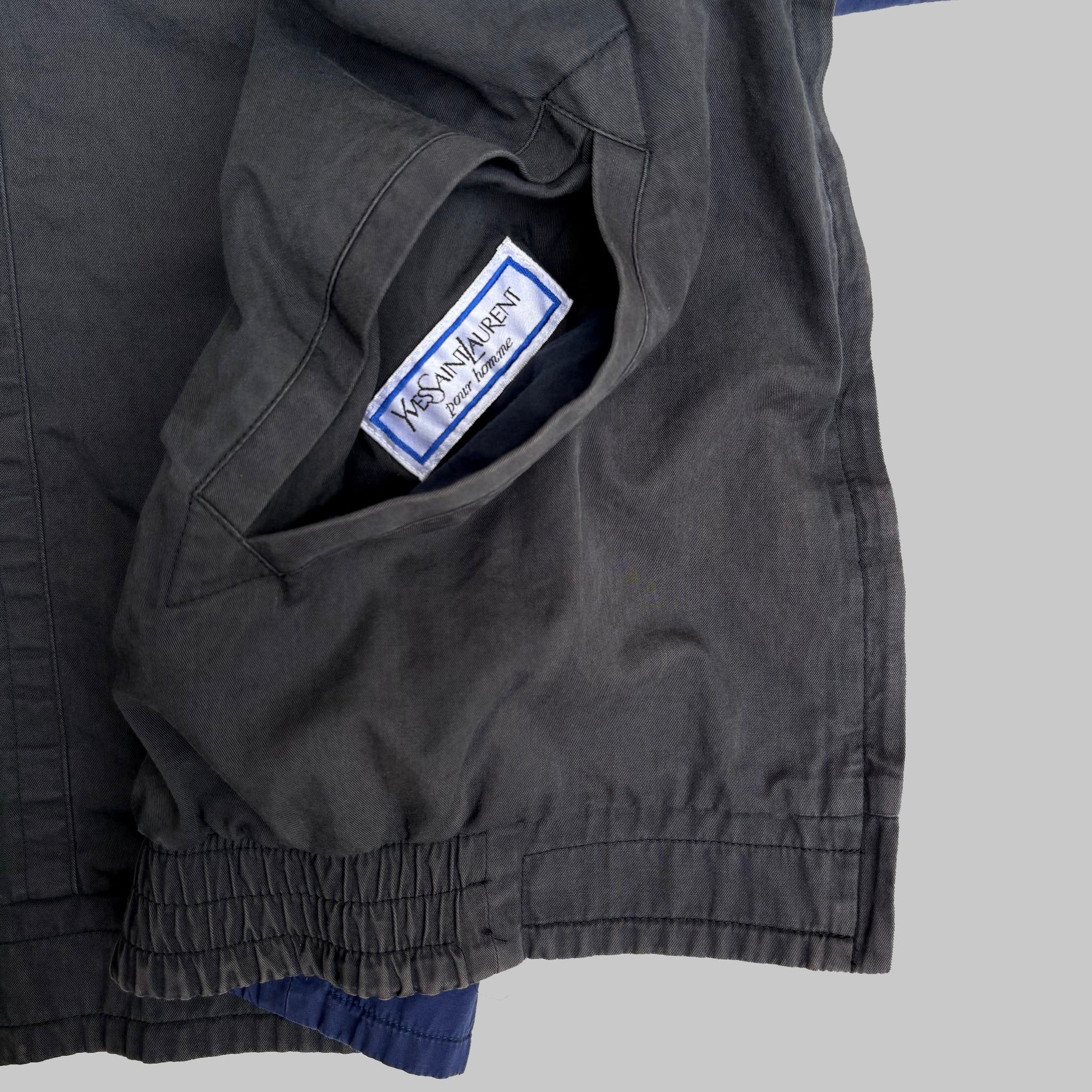 Nice 1990's original Yves Saint-Laurent vintage jacket. In blue with black details and logo embroidered on the chest. Lampo zipper.