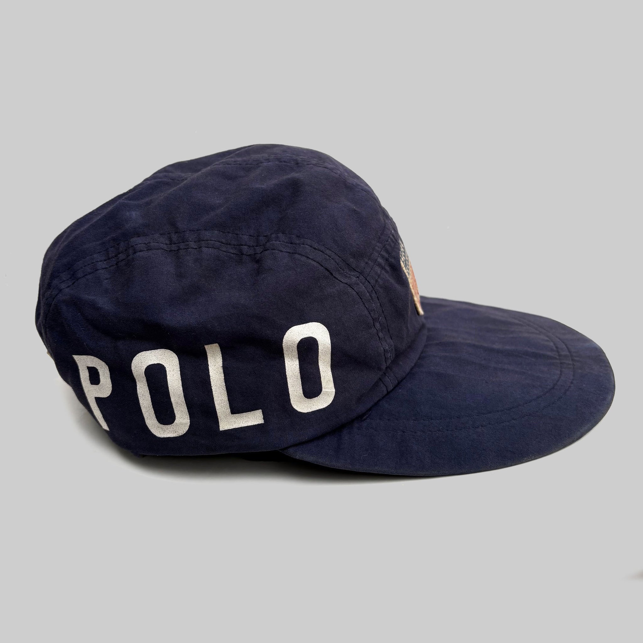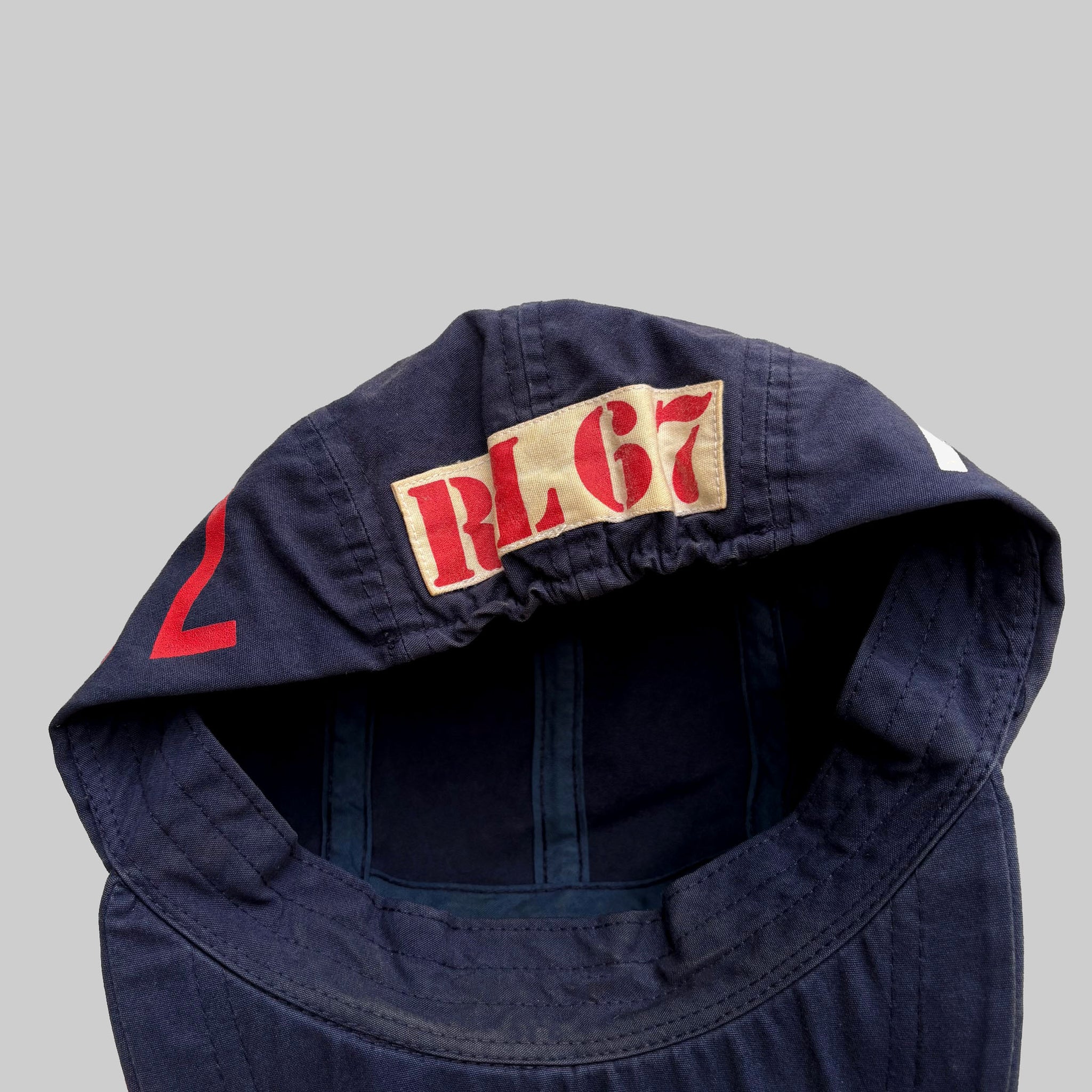 Extremely rare, iconic 1992 Polo by Ralph Lauren 'RL 67' vintage cap, in navy cotton with American flag shield embroidered on the front, 'POLO' and '1992' on each sides and patch on the back. Good condition, one size fits all. Made in USA