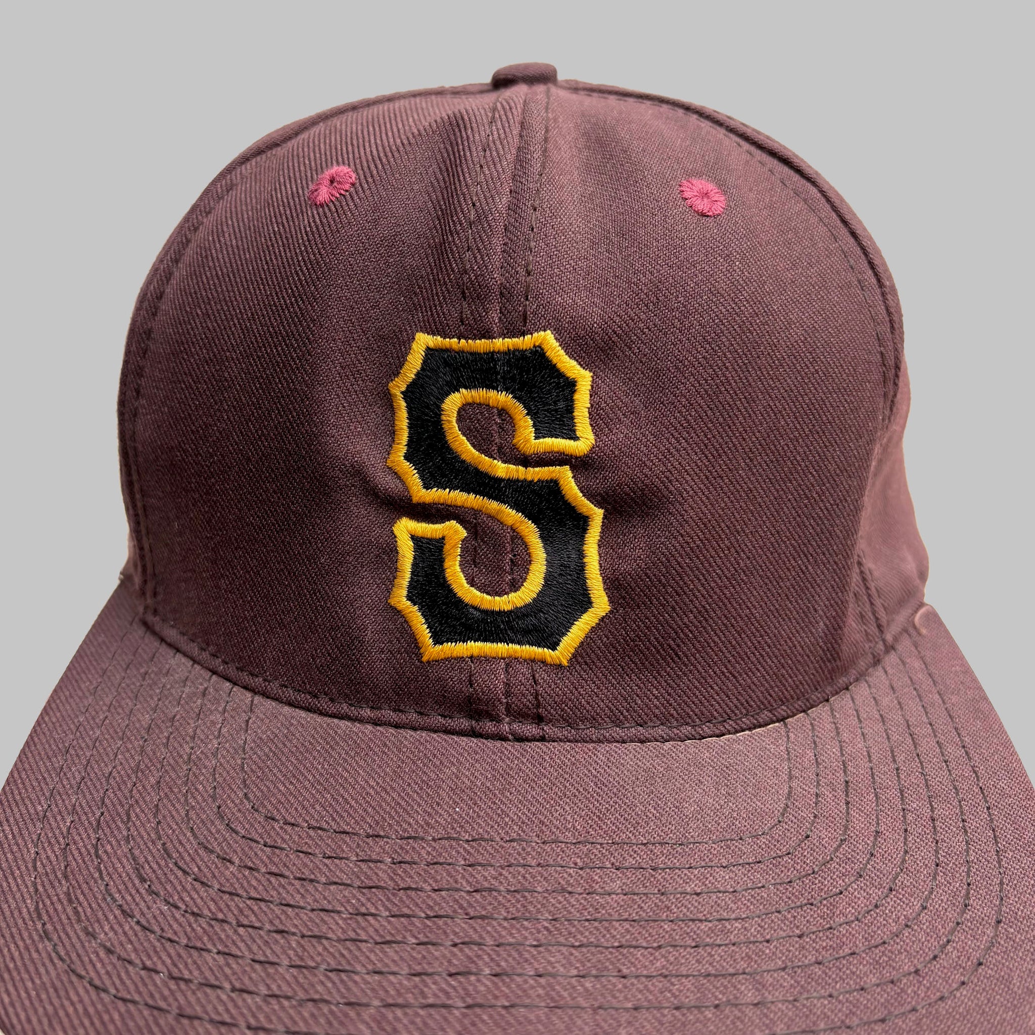 Very rare early 1990's original vintage Stüssy 'Authentic Caps' snapback cap, in brown cotton with 'S' graphic embroidered on the front and logo on the back. Great condition, made in USA