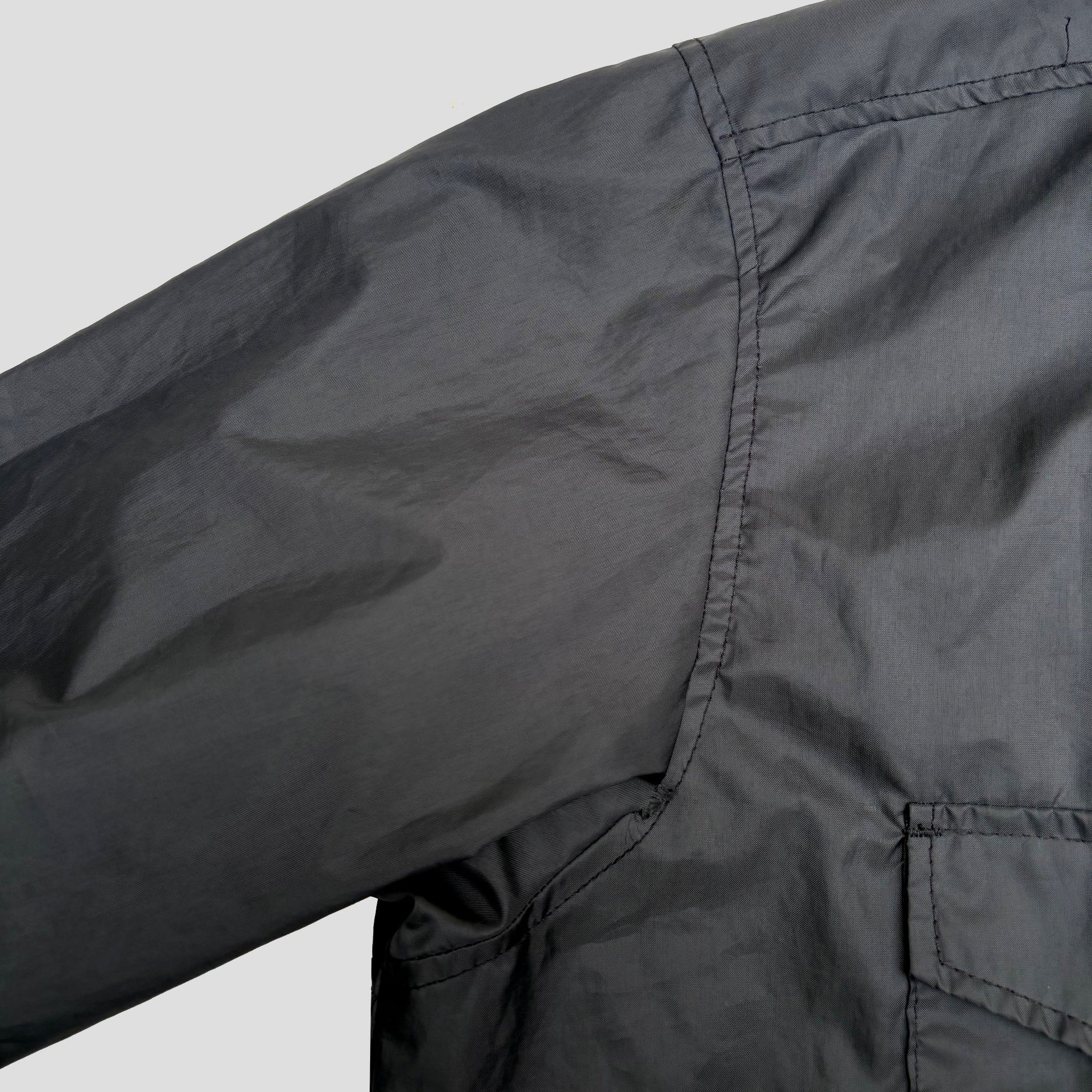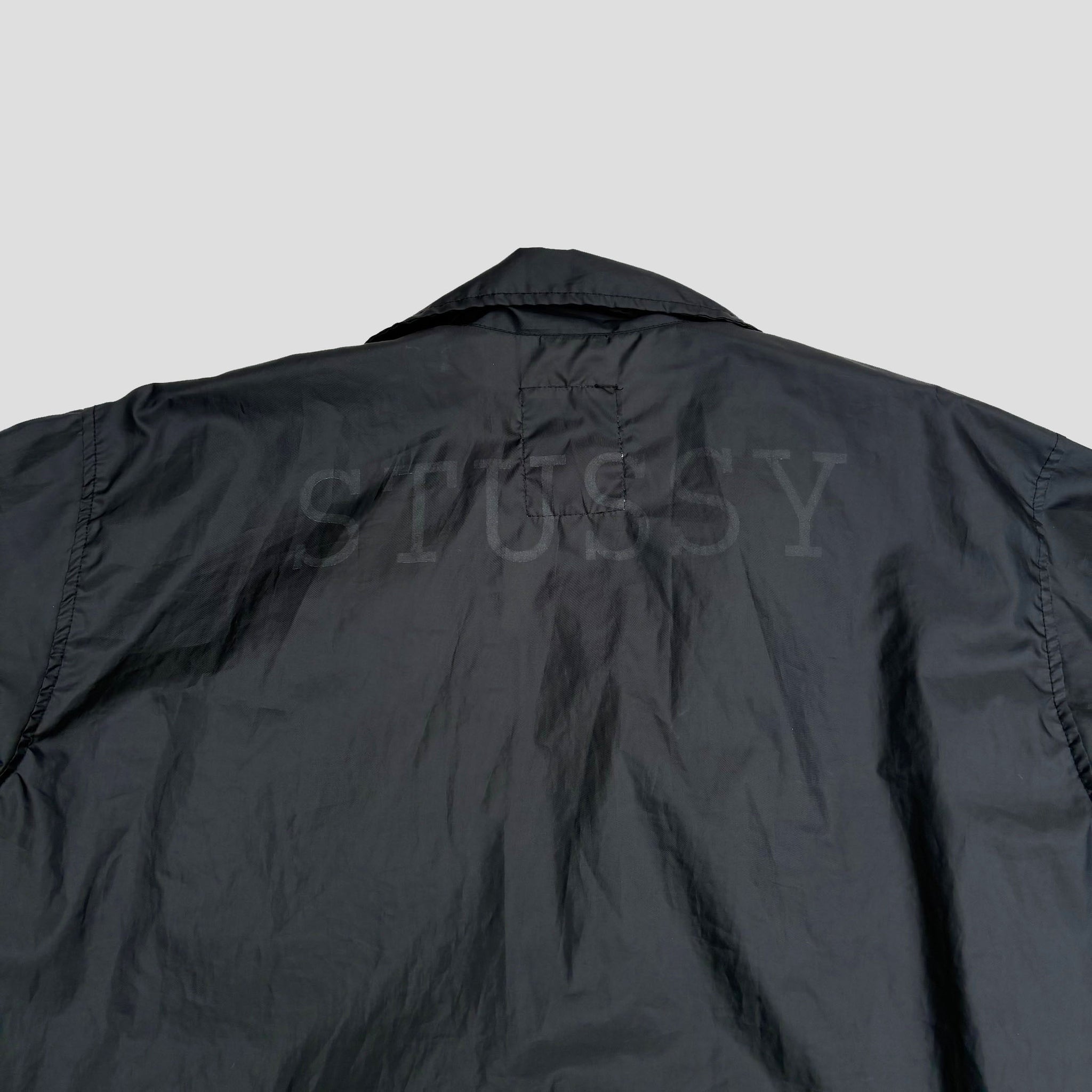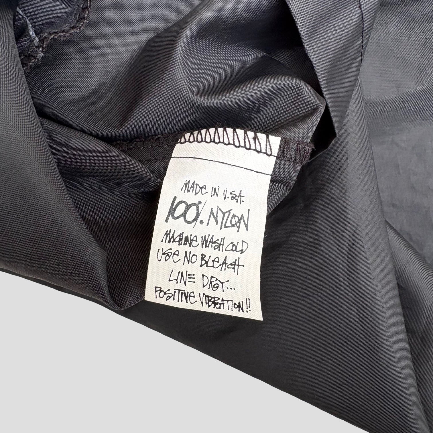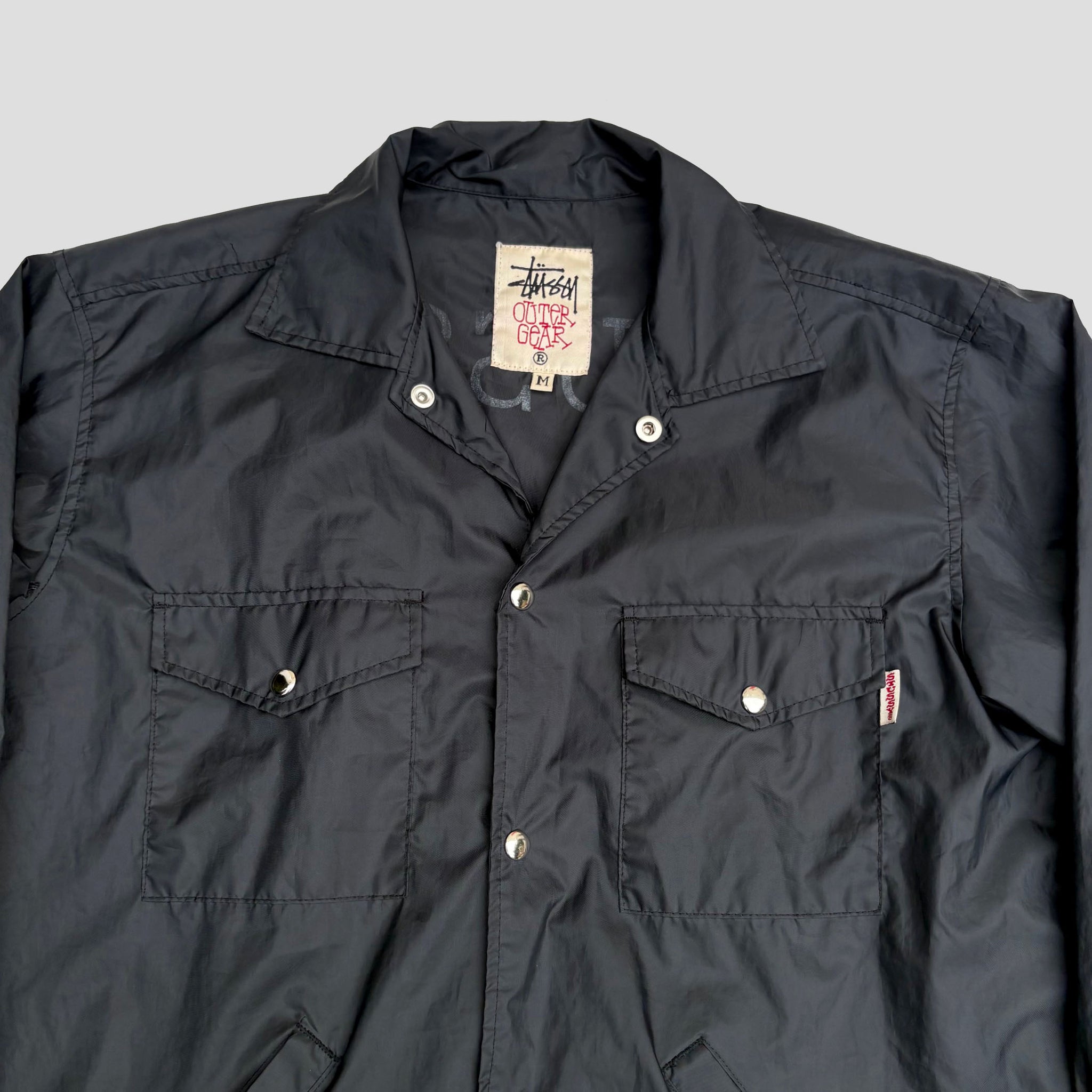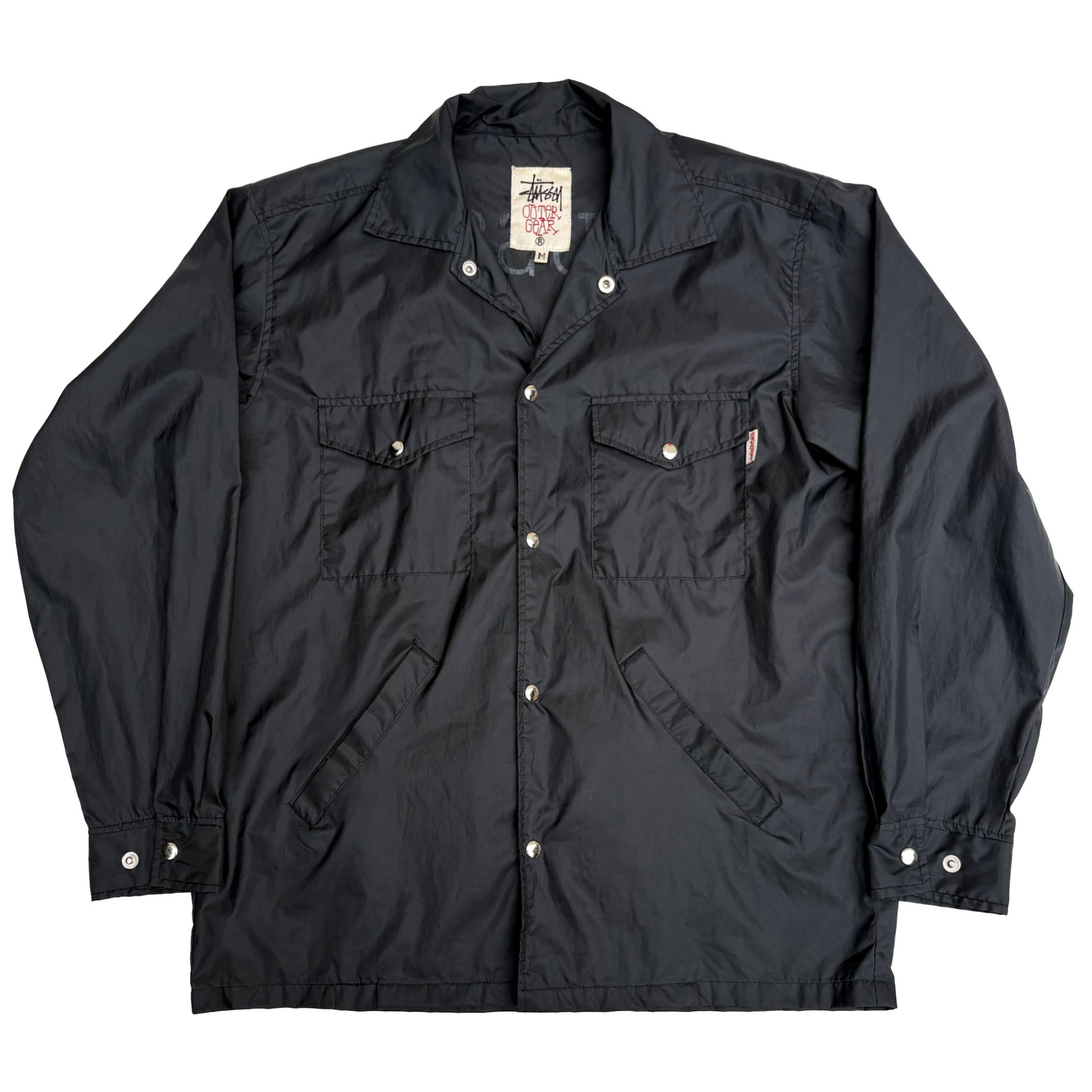 Rare 1990's original Stüssy 'Outer Gear' vintage jacket, in black nylon with logo embroidered on the side of the pocket, metal snap buttons. Made in USA