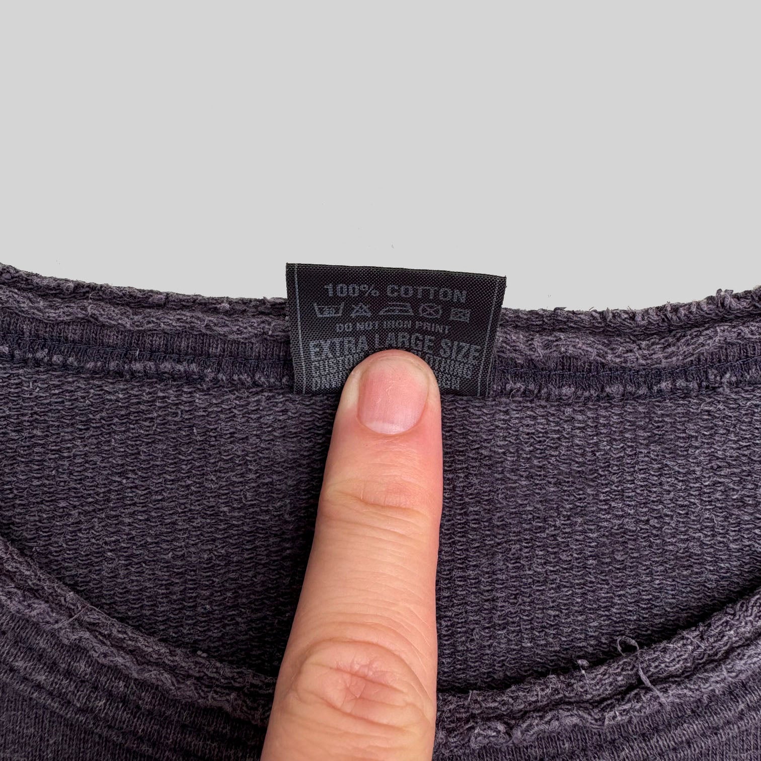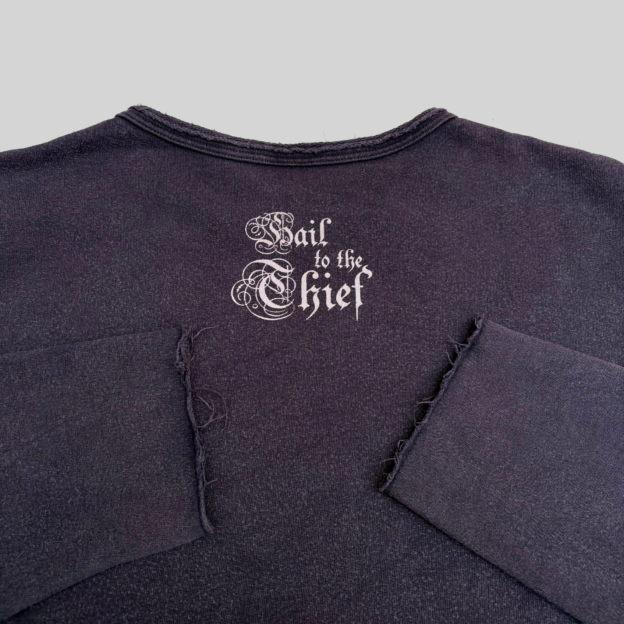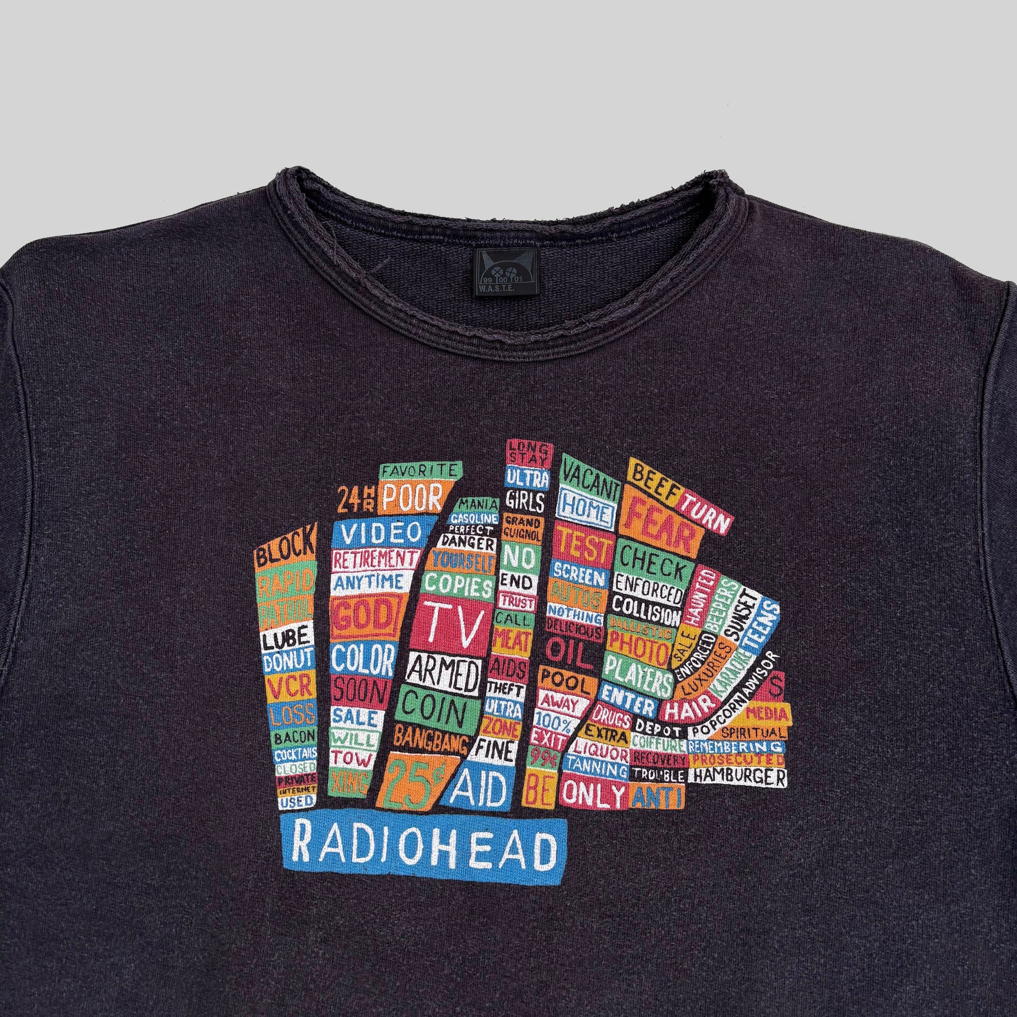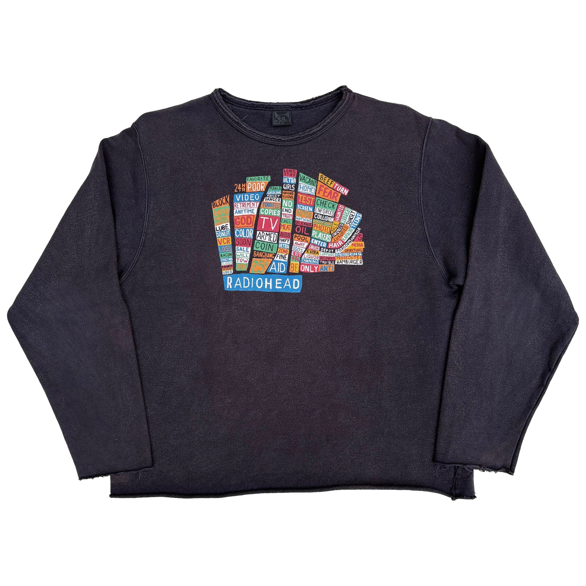 Rare 2000's Radiohead 'Hail to the Thief' vintage concert sweatshirt, in dark navy grey cotton with graphic printed on the front and upper back. Custom made in the UK