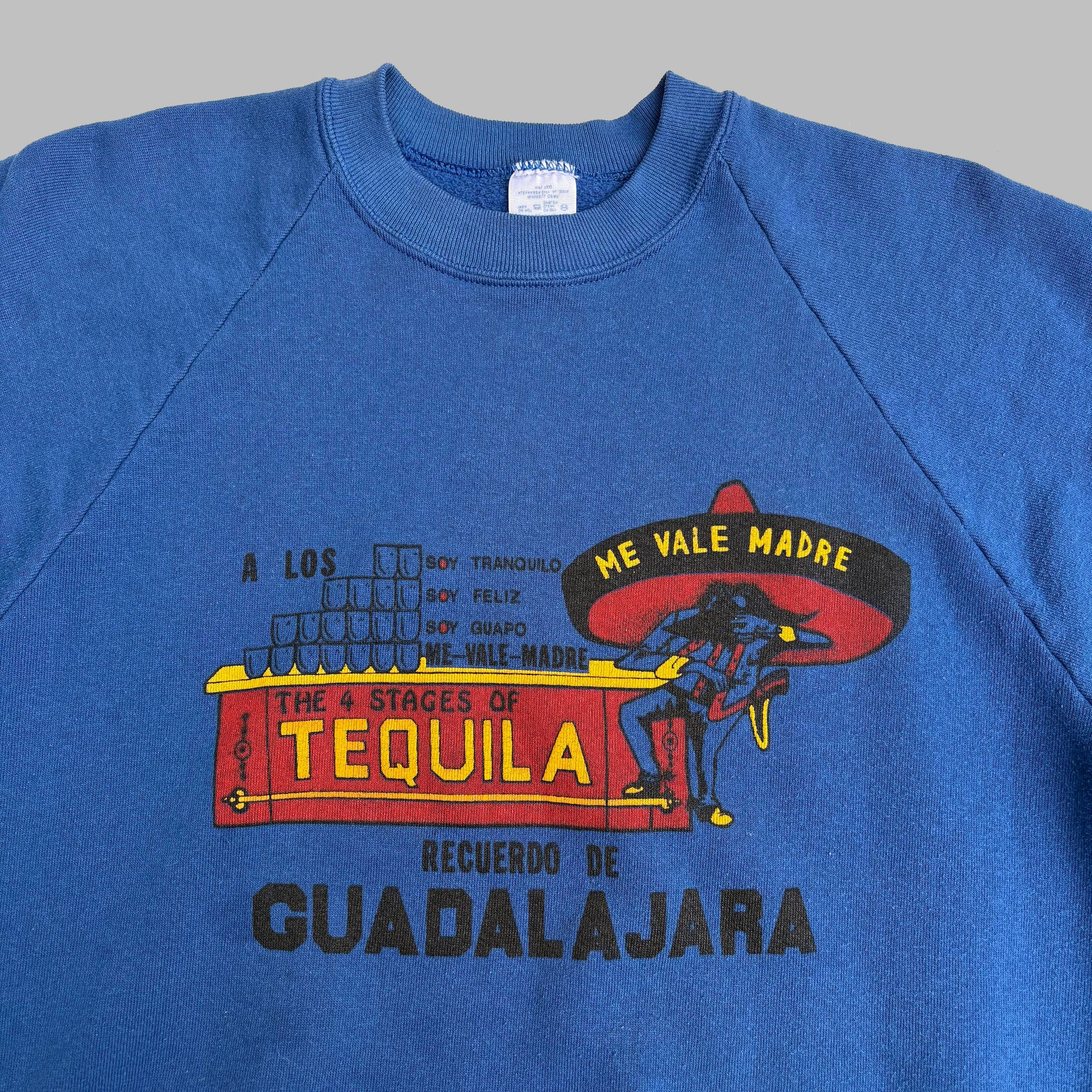 Vintage 1980's 'Tequila' Guadalajara, Mexico souvenir sweatshirt, in blue cotton with graphic printed on the front. Made in USA