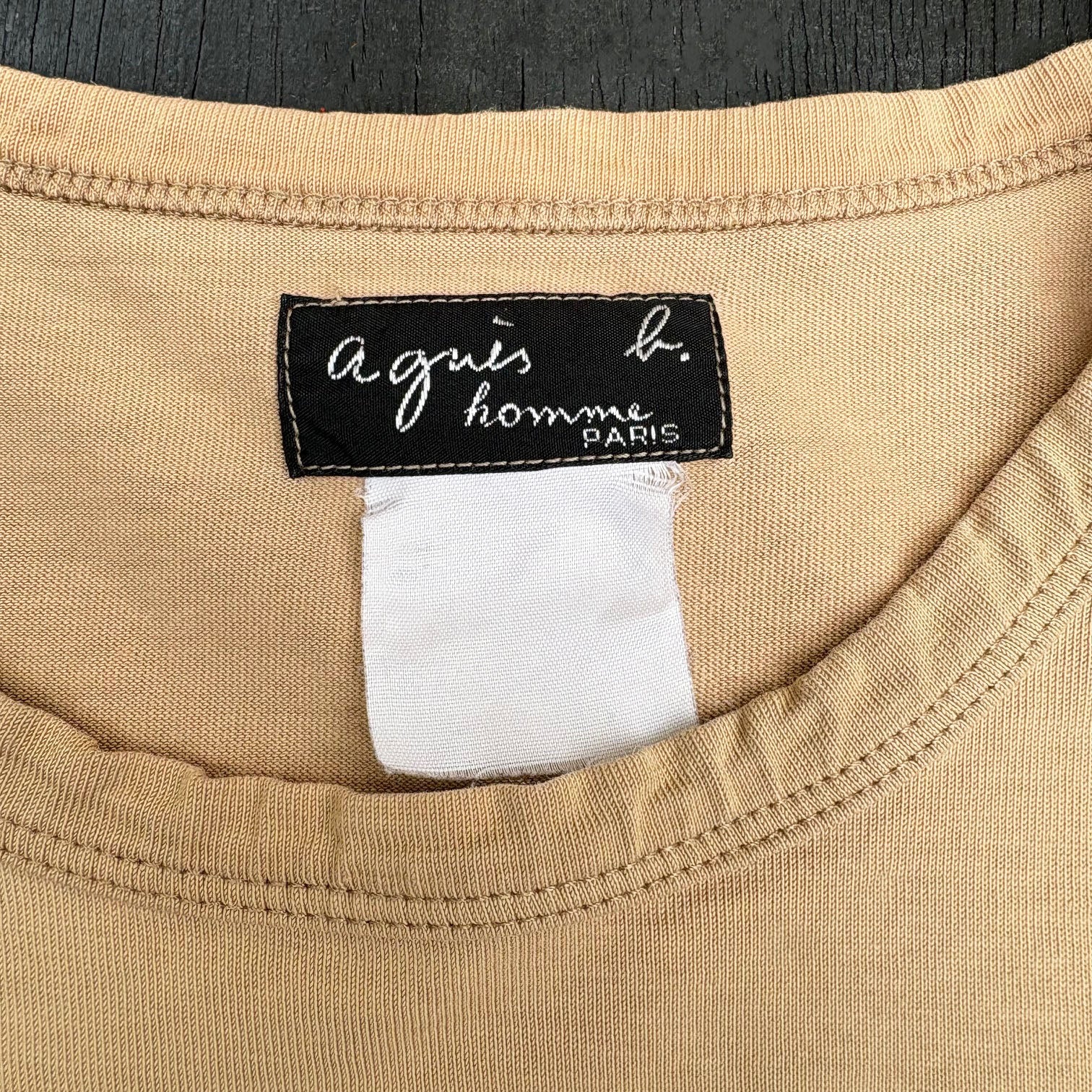 Rare, original 1990's Agnès B. 'Gecko / Lizard' t-shirt, in light sandy brown cotton with classic graphic logo printed on the chest, beautiful piece. Made in France