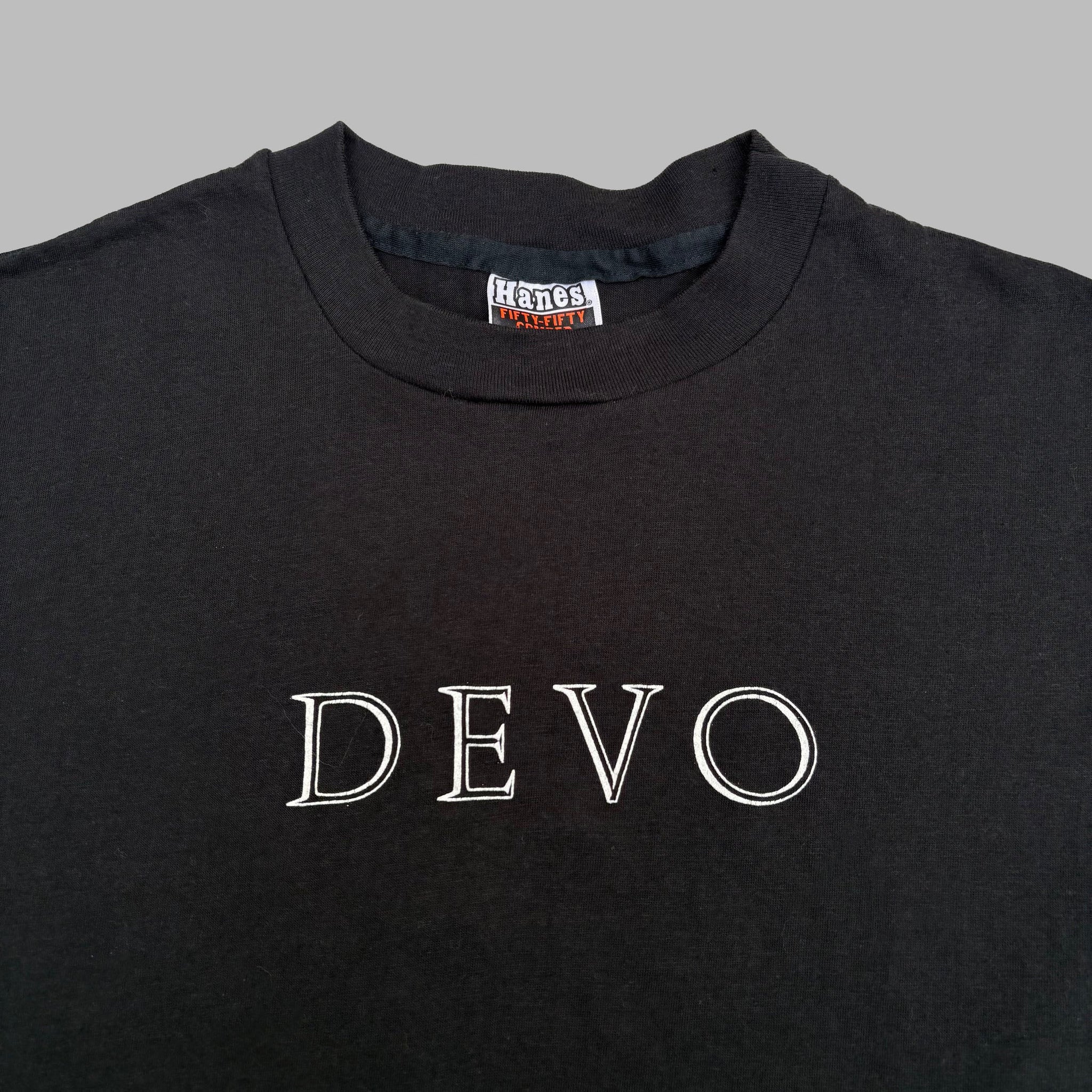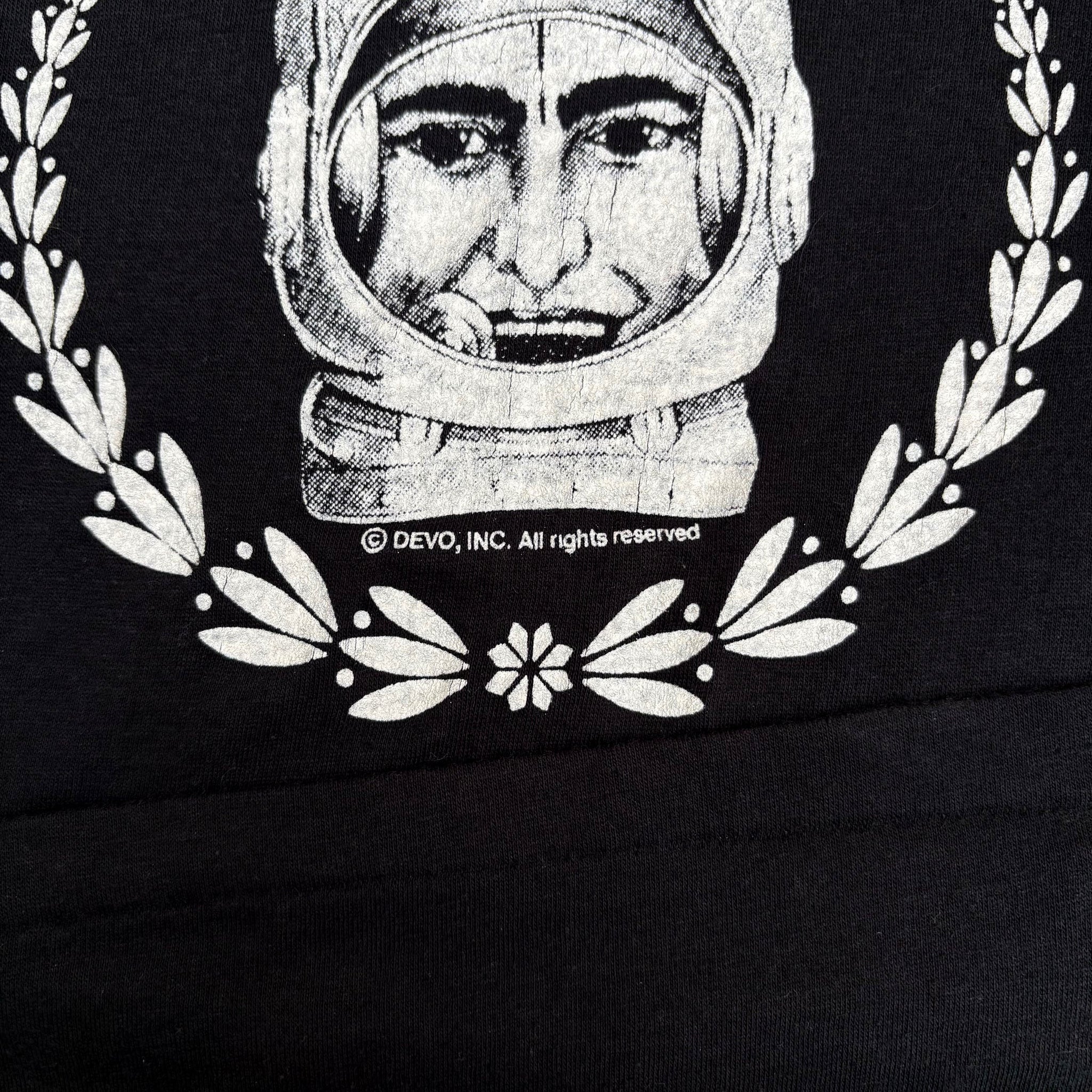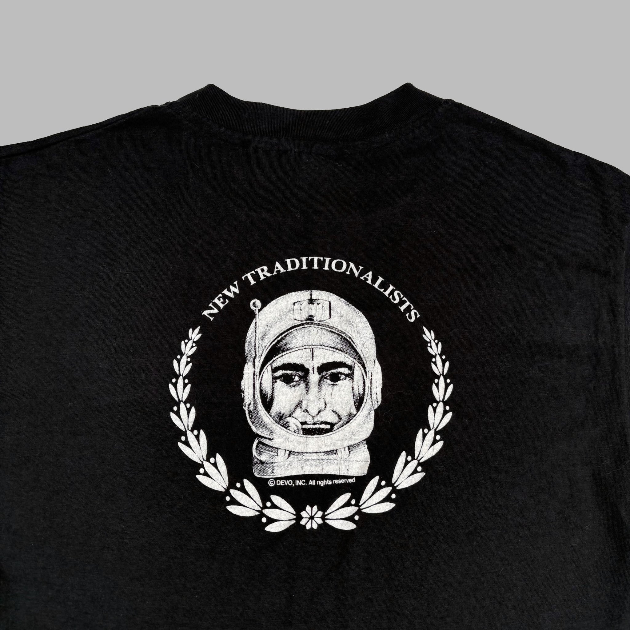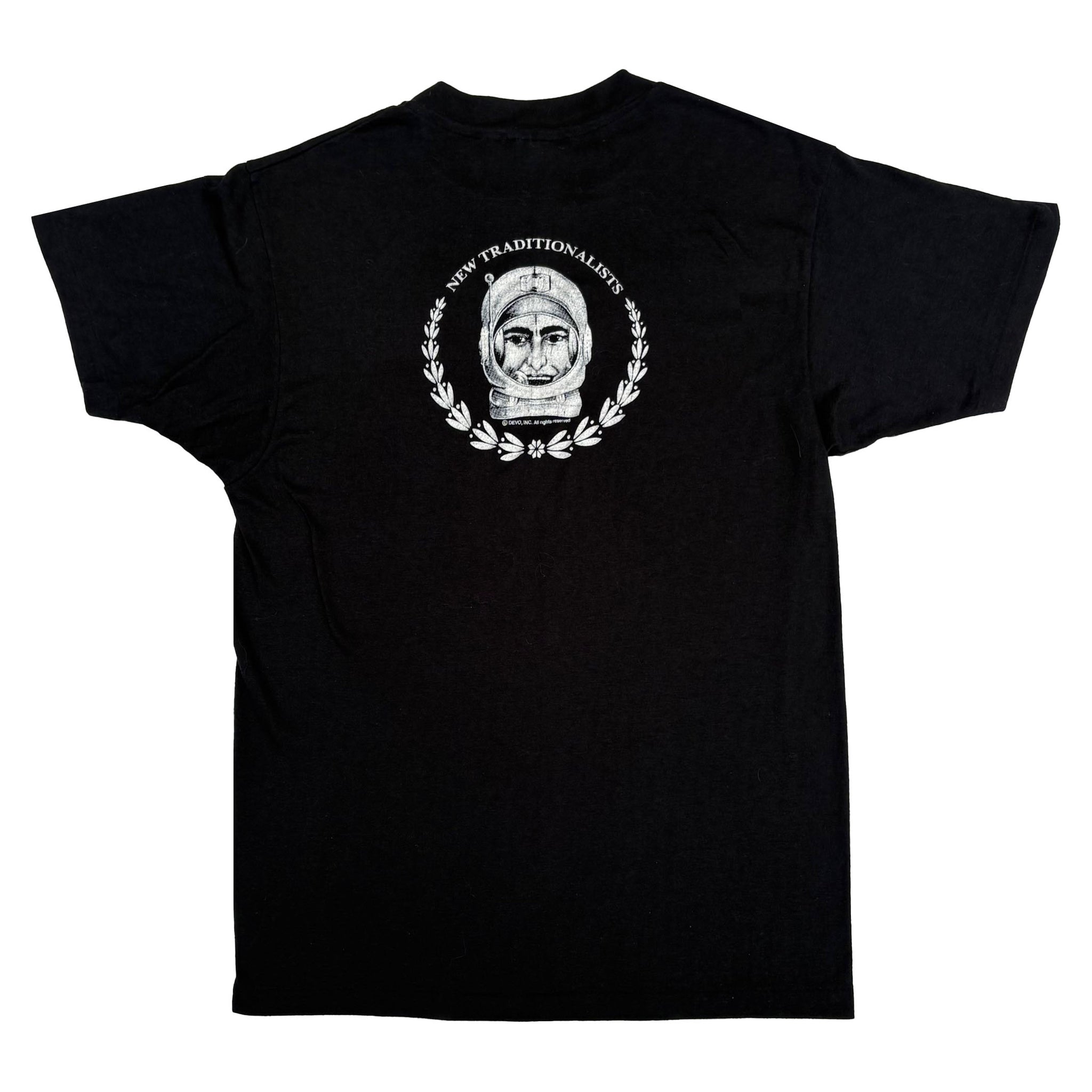 Original 1981 Devo 'New Traditionalists' vintage band t-shirt, in black single stitched cotton with graphic logo printed on the chest and astronaut graphic back. Very rare! Made in USA