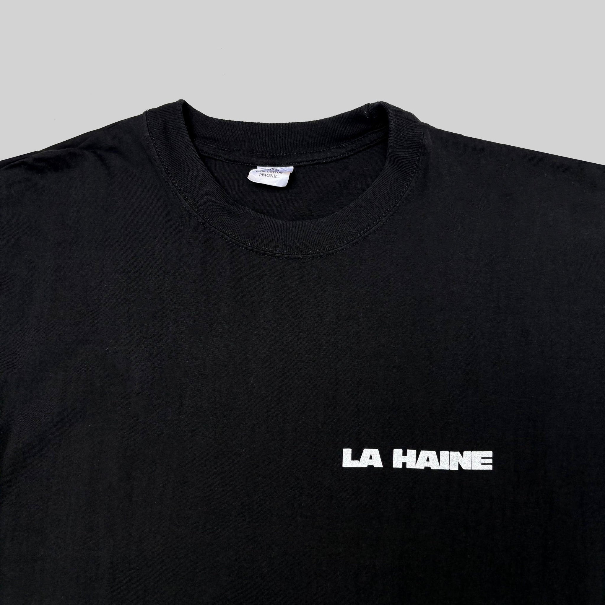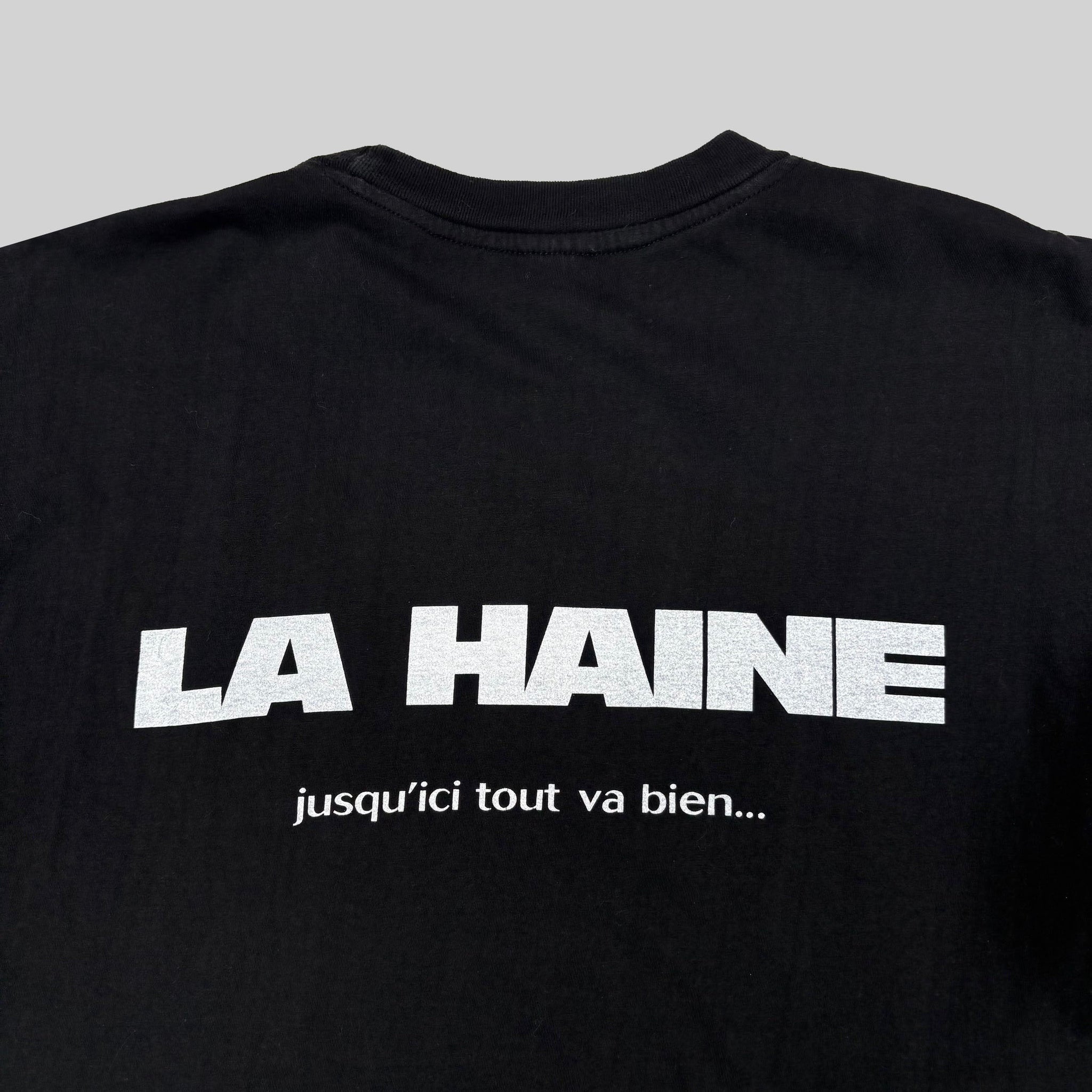 Extremely rare, original 1995 La Haine, French movie promo vintage t-shirt, in black cotton with graphic logo printed on the chest and back. Crazy one....!