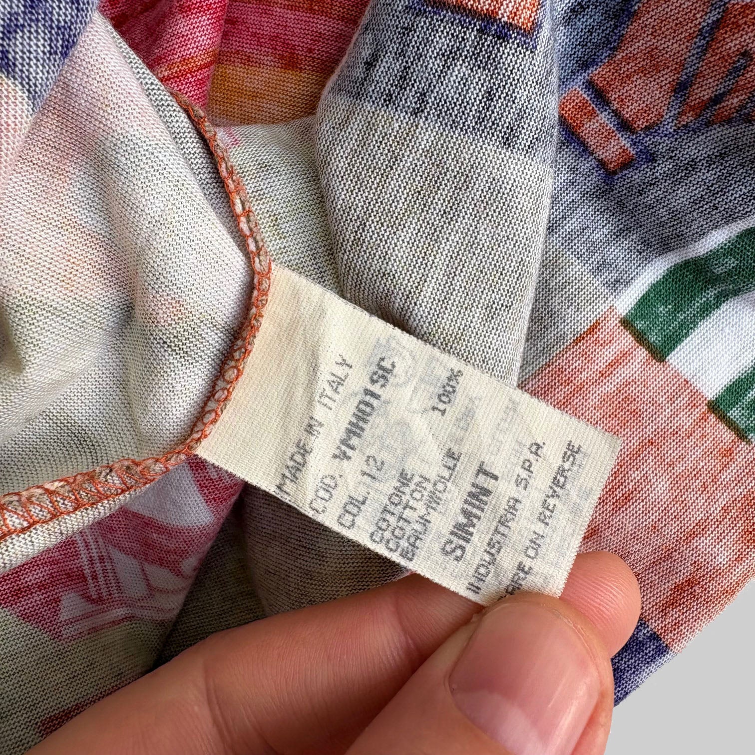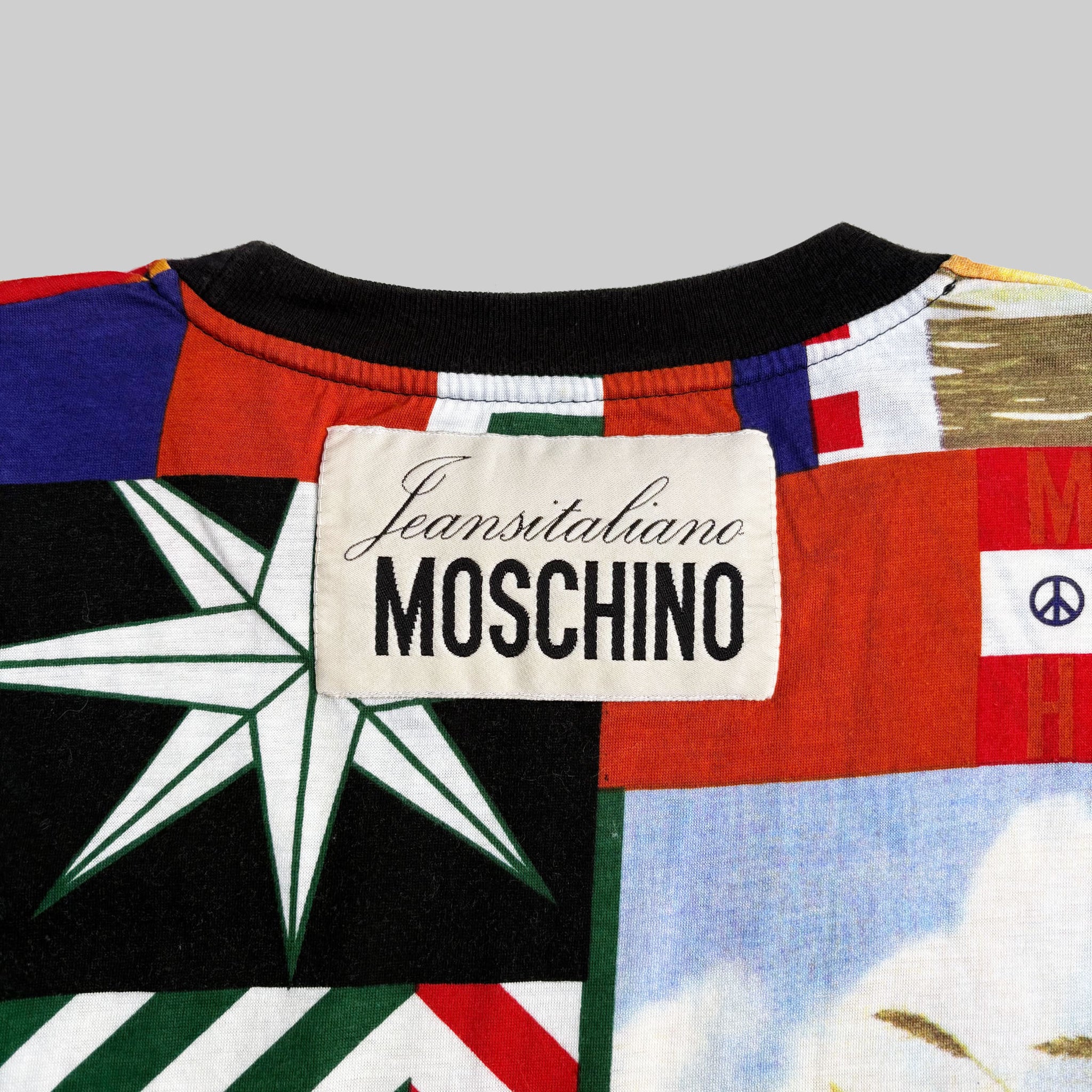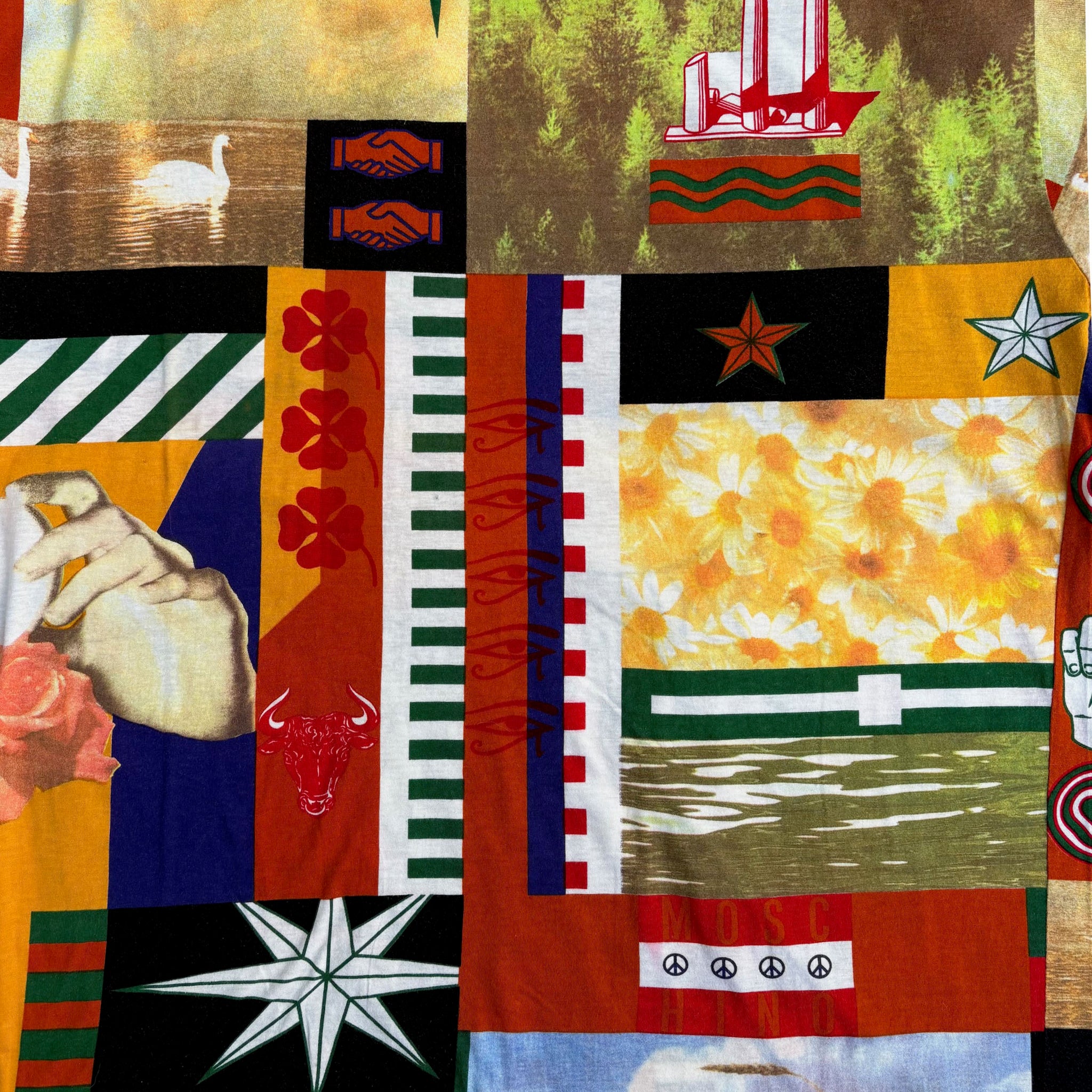 Rare, original 1990's Moschino Jeans 'Jeansitaliano' designer t-shirt, in all over graphic printed cotton with great details, beautiful piece. Made in Italy