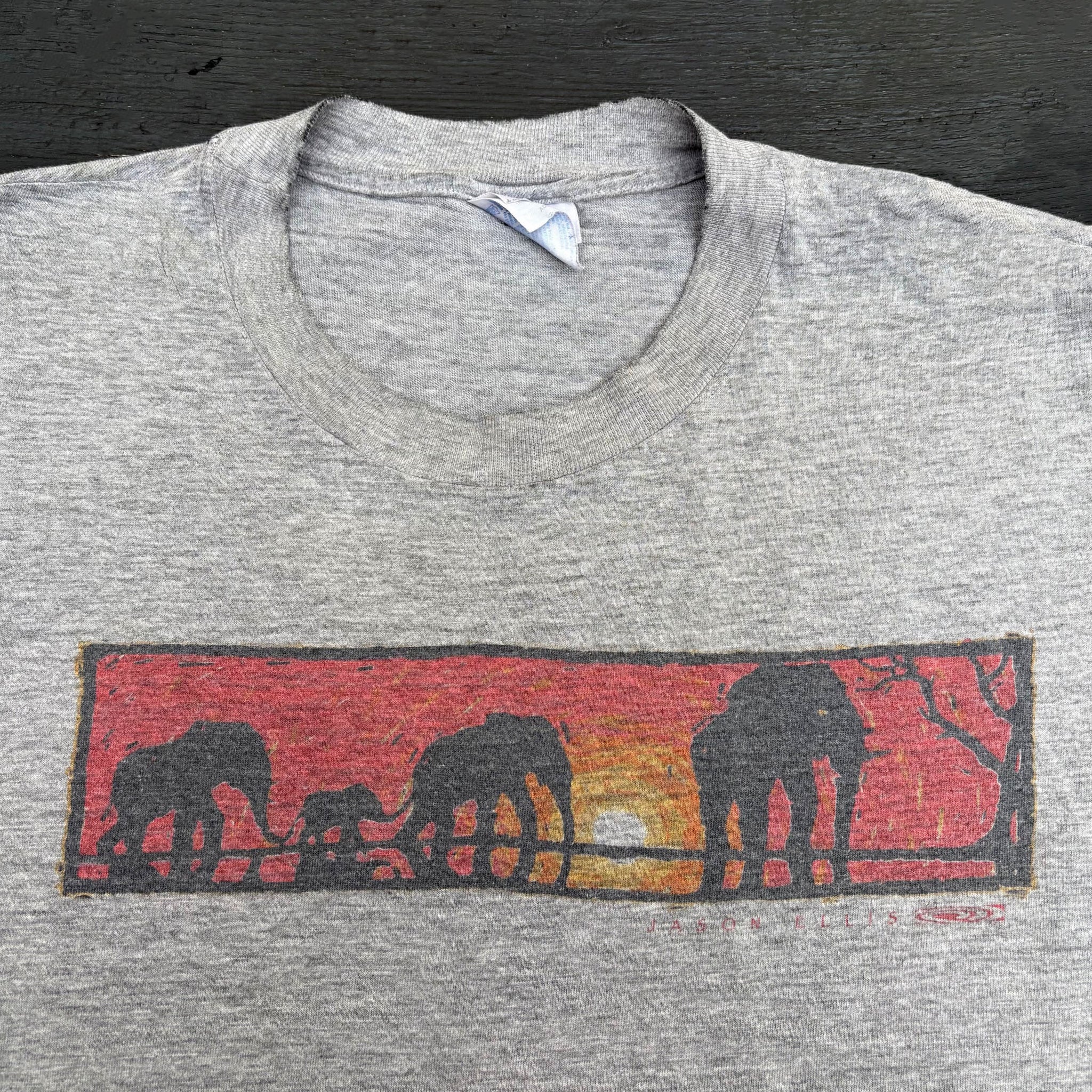 Original 1996 Powell Peralta, Jason Ellis vintage skate t-shirt, in heather grey cotton with 'Elephants' graphic printed on the chest.
