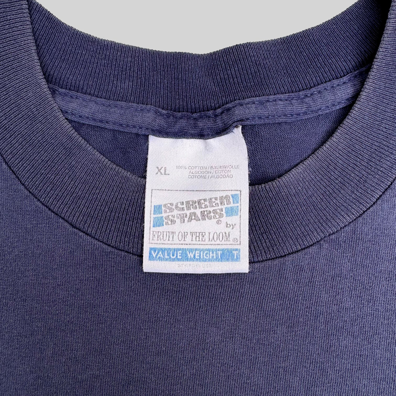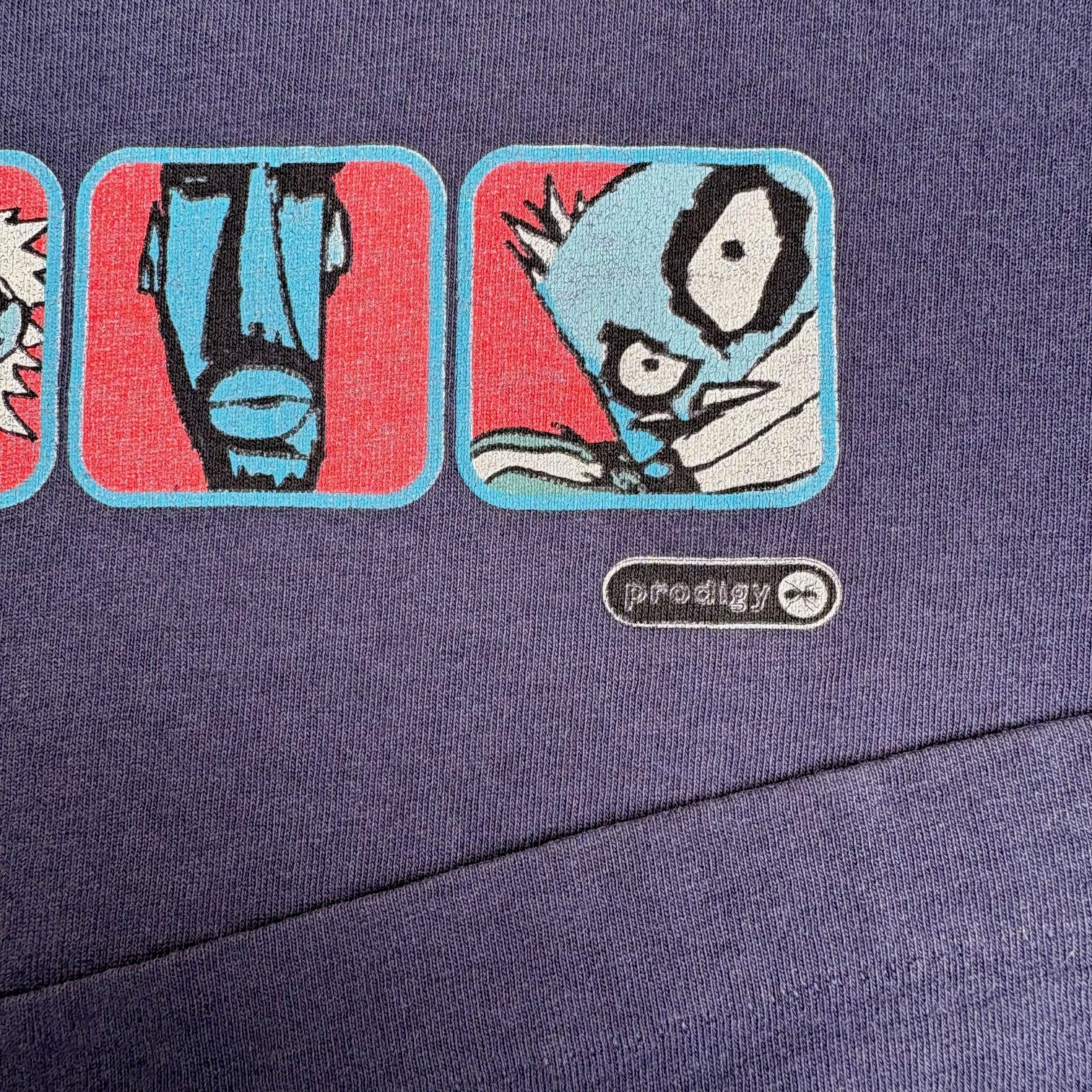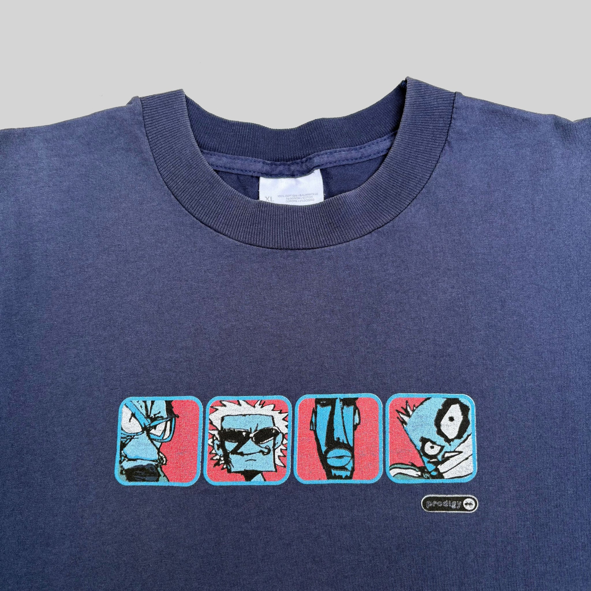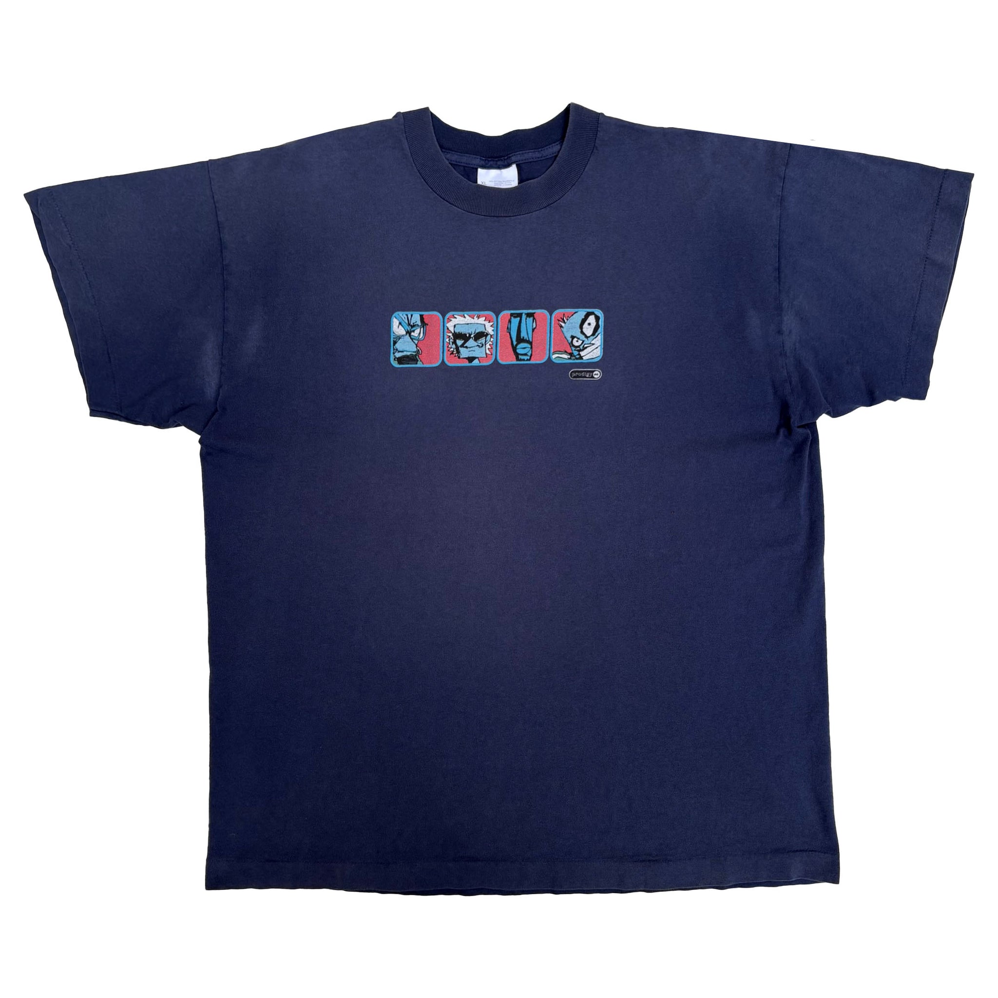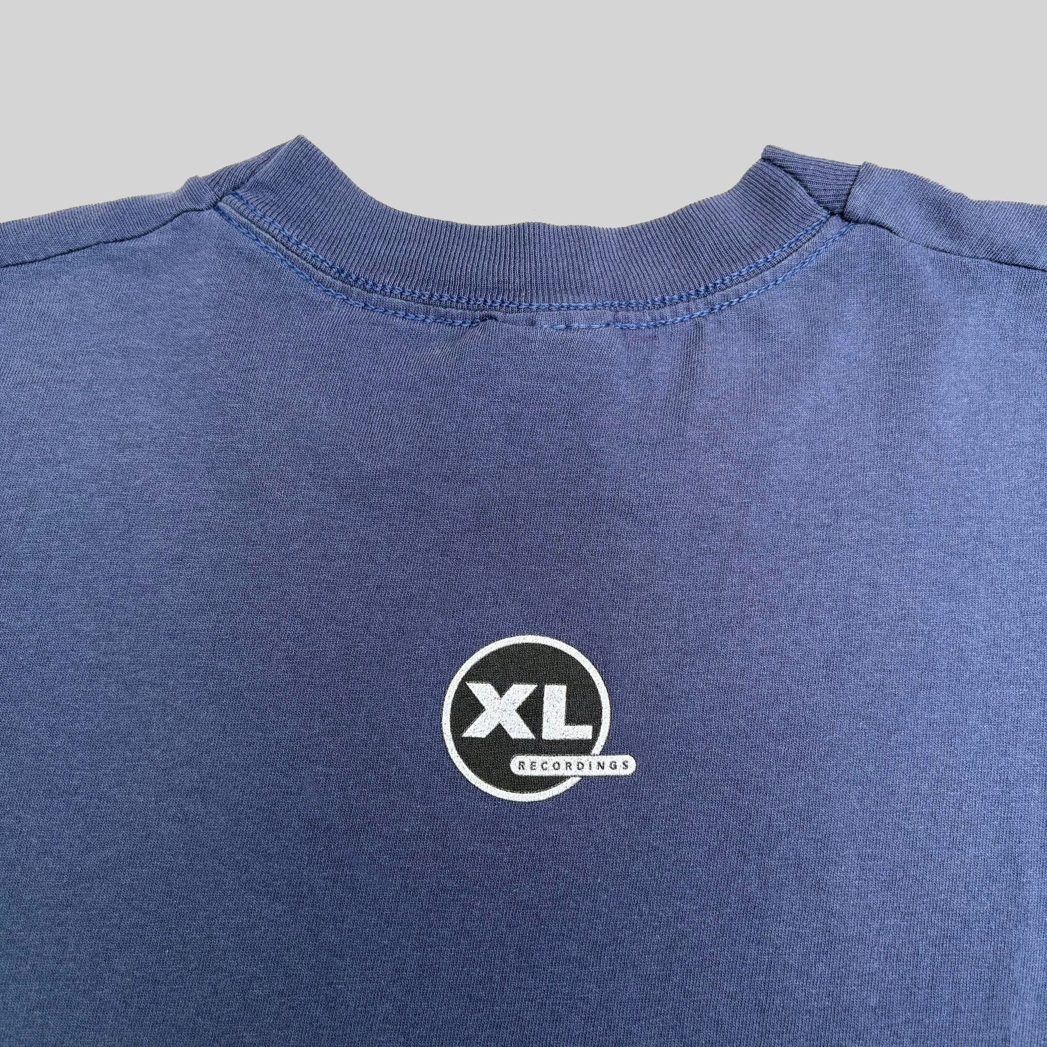Crazy 1997 The Prodigy 'The Fat of the Land' vintage band t-shirt, in single stitched navy cotton with graphic printed on the front and XL Recordings logo on the upper back.