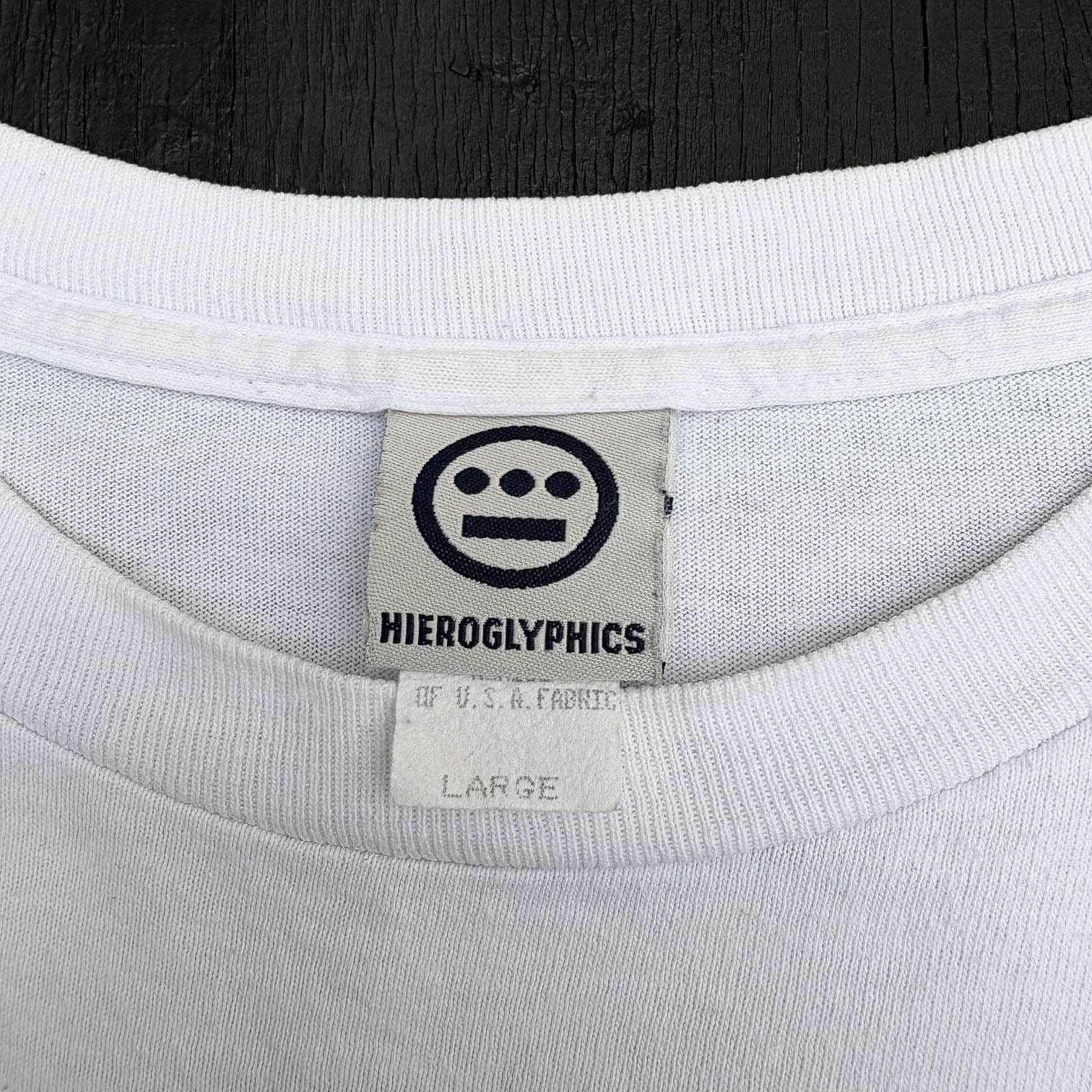 Crazy late 1990's Souls of Mischief vintage band t-shirt, in white cotton with graphic printed on the front and large Hieroglyphics logo printed on the back.