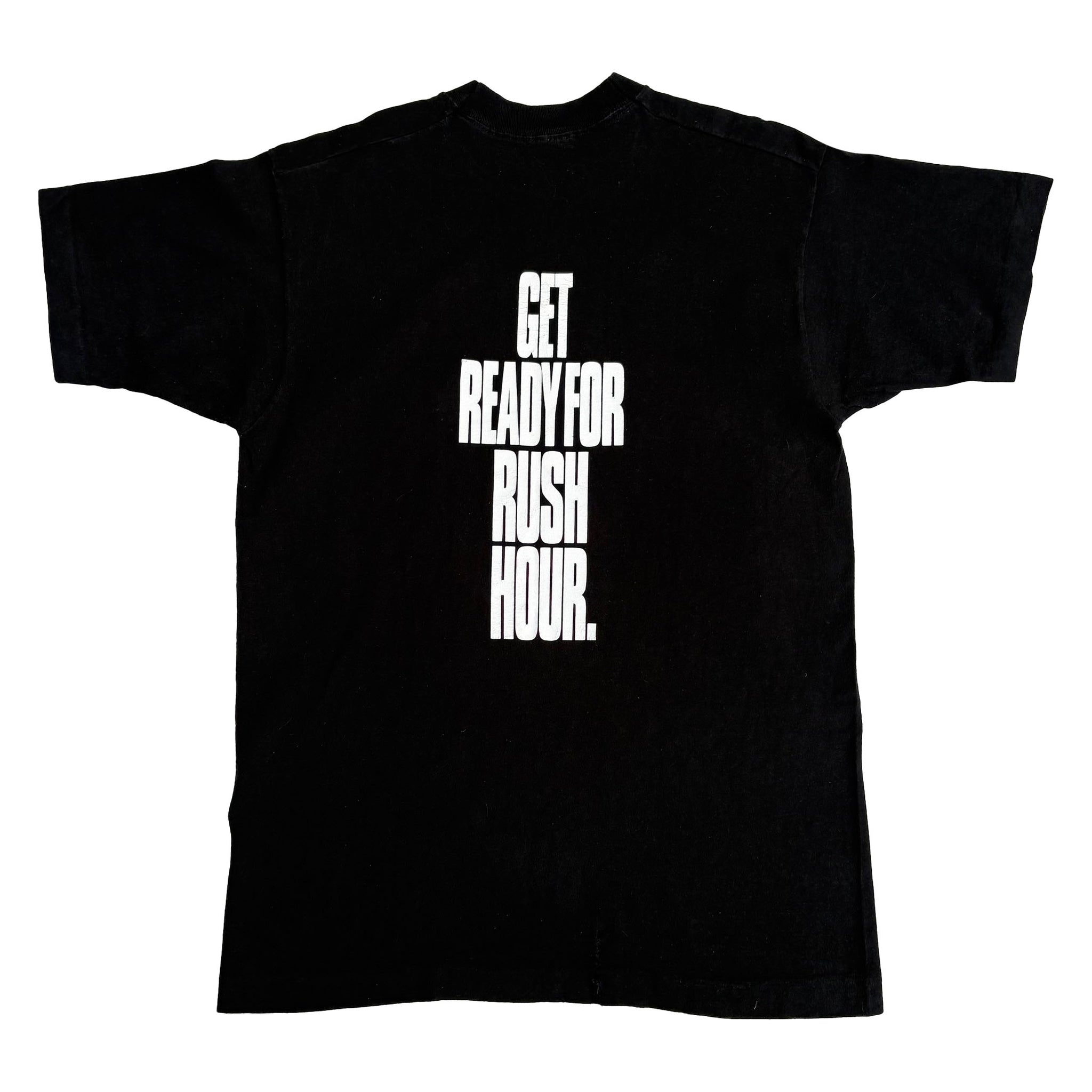 Extremely rare, original 1994 Speed, Keanu Reeves vintage movie promo t-shirt, in black single stitched cotton with bus graphic printed on the chest and 'Get Ready For Rush Hour.' quote on the back. Crazy one....! Made in USA
