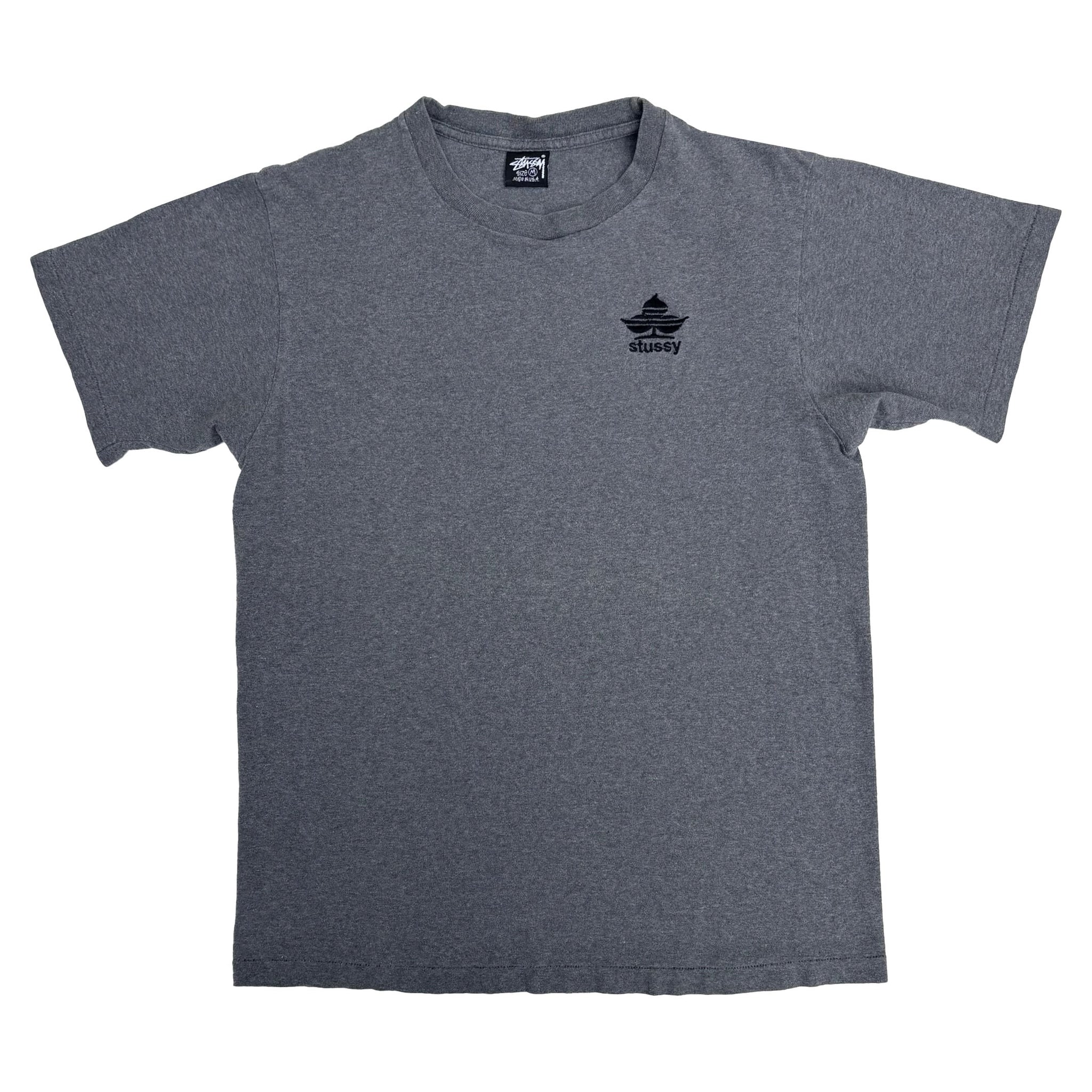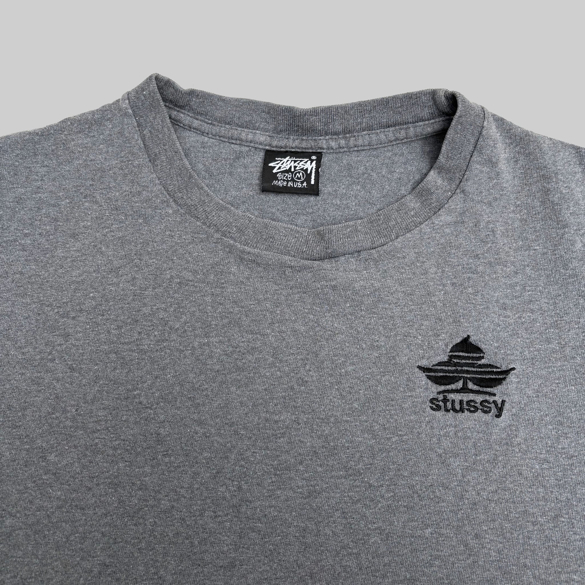Very rare 1990's original Stüssy 'Trefle' vintage t-shirt, in heather grey single stitched cotton with graphic logo embroidered on the chest. Made in USA