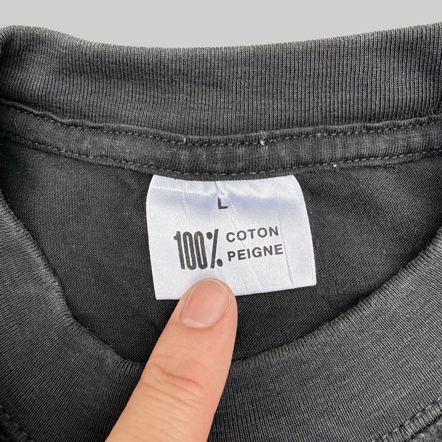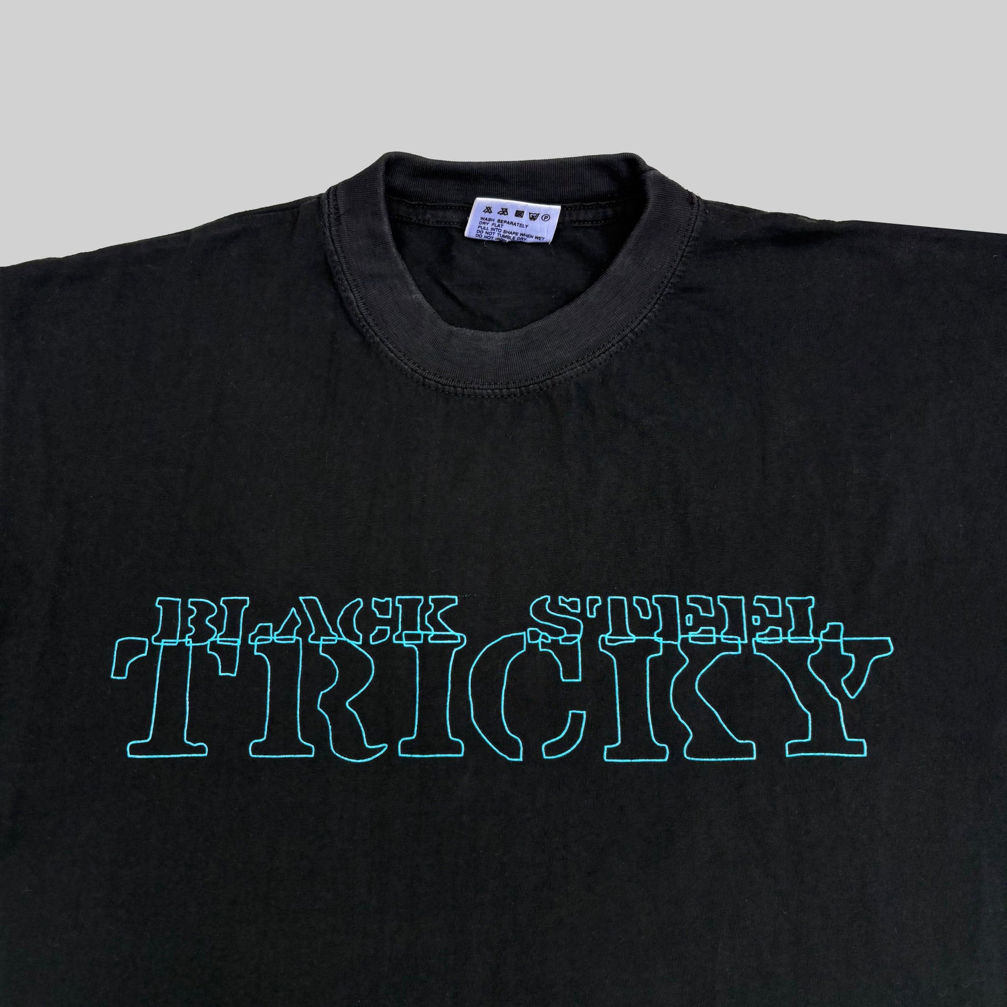Original 1995 Tricky 'Black Steel' Maxinquaye album vintage t-shirt, in black cotton with graphic printed on the front and on the back! Crazy piece.