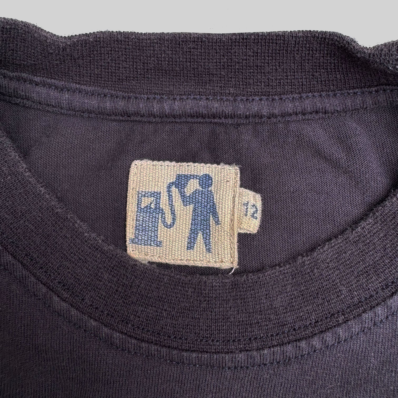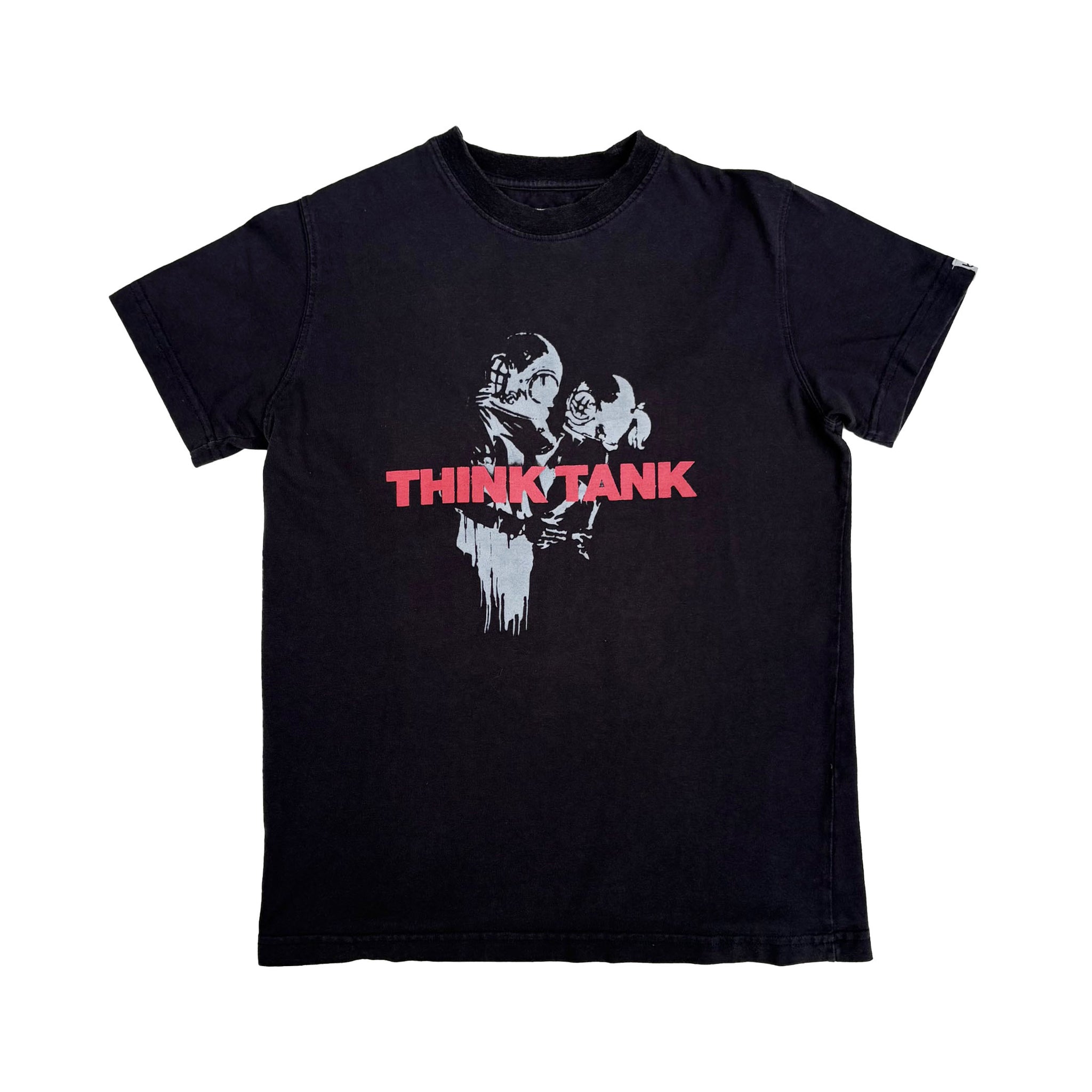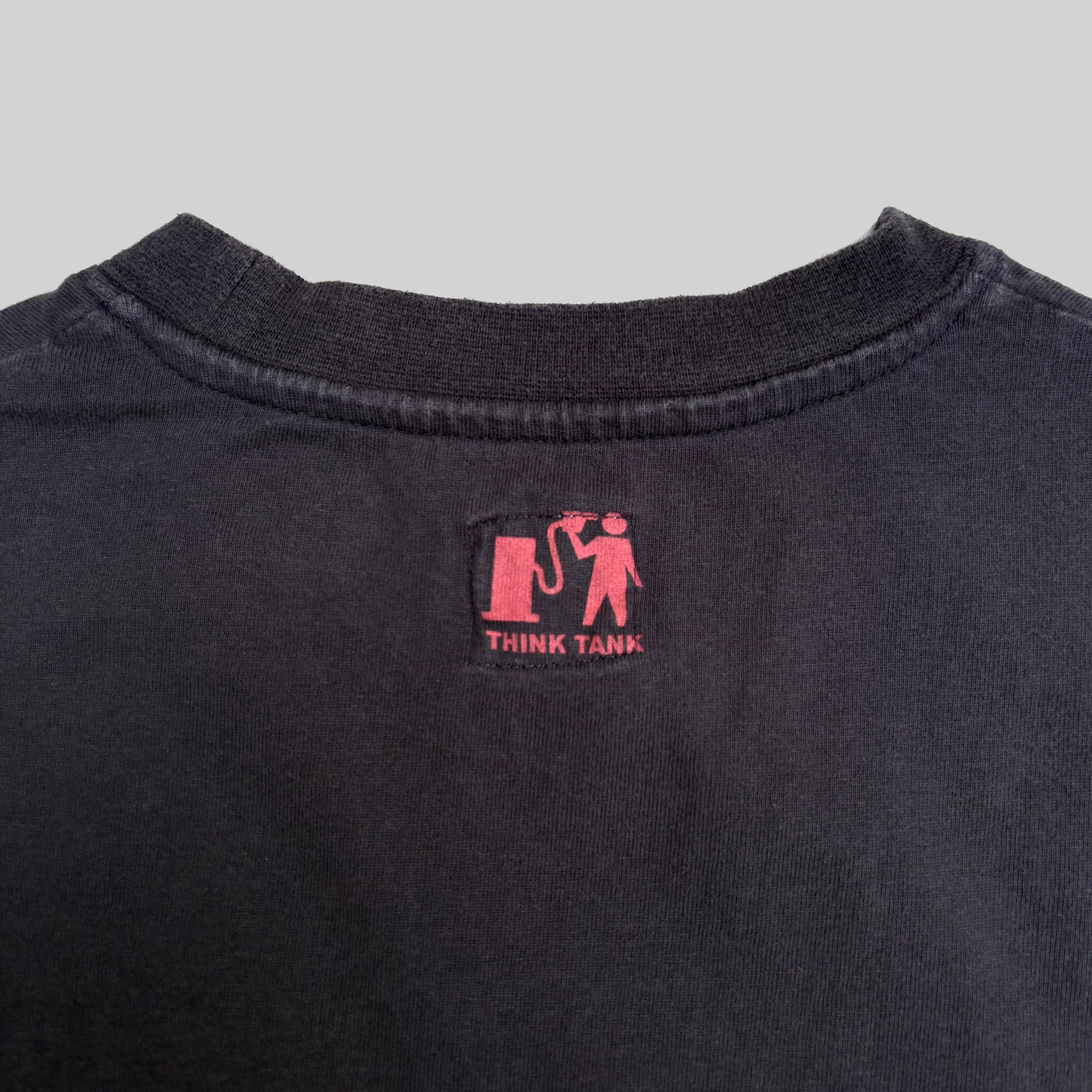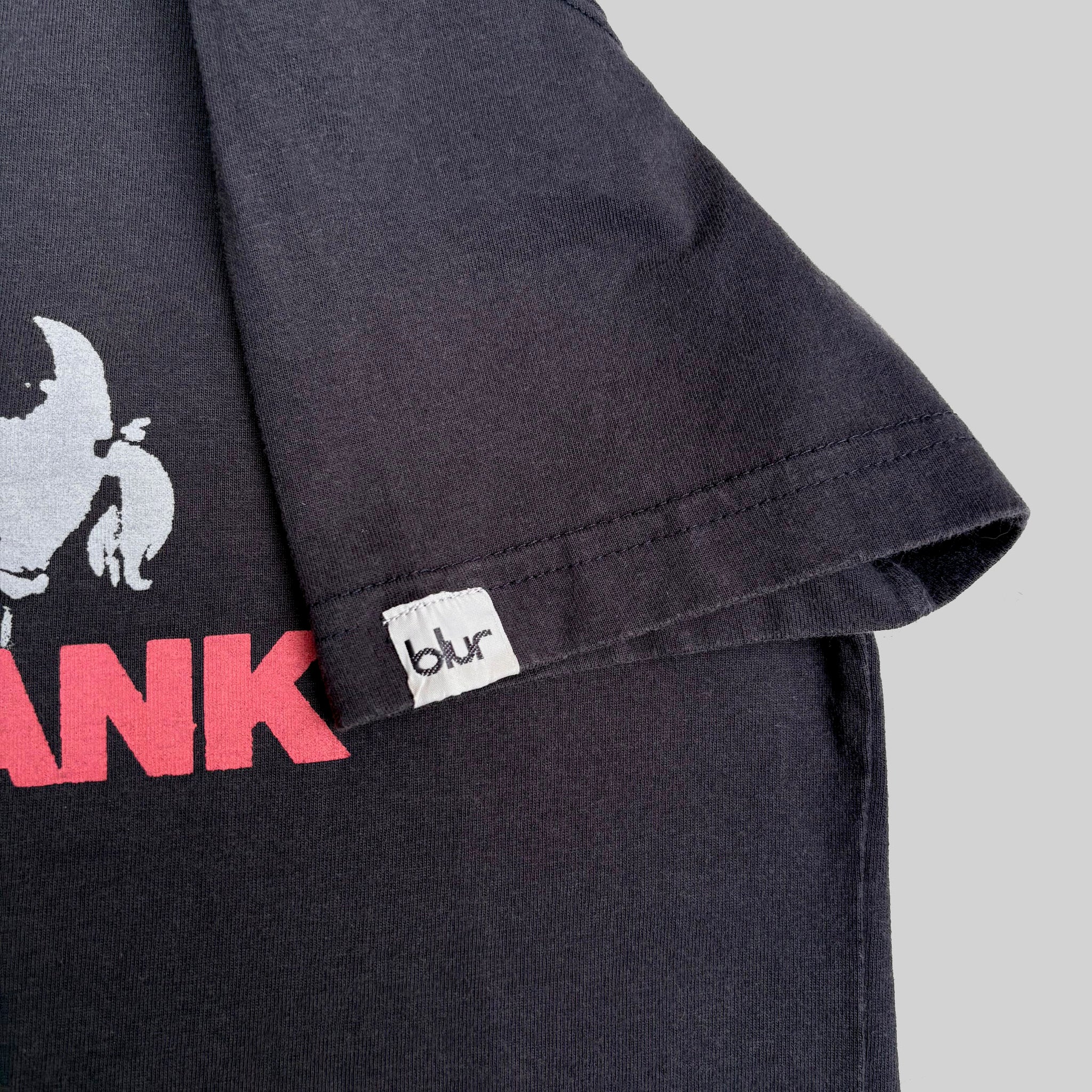 Vintage 2003 Blur 'Think Tank' vintage band, album promo t-shirt, in navy blue cotton with Banksy stencil art graphic printed on the front, logo label on the sleeve, rare one.