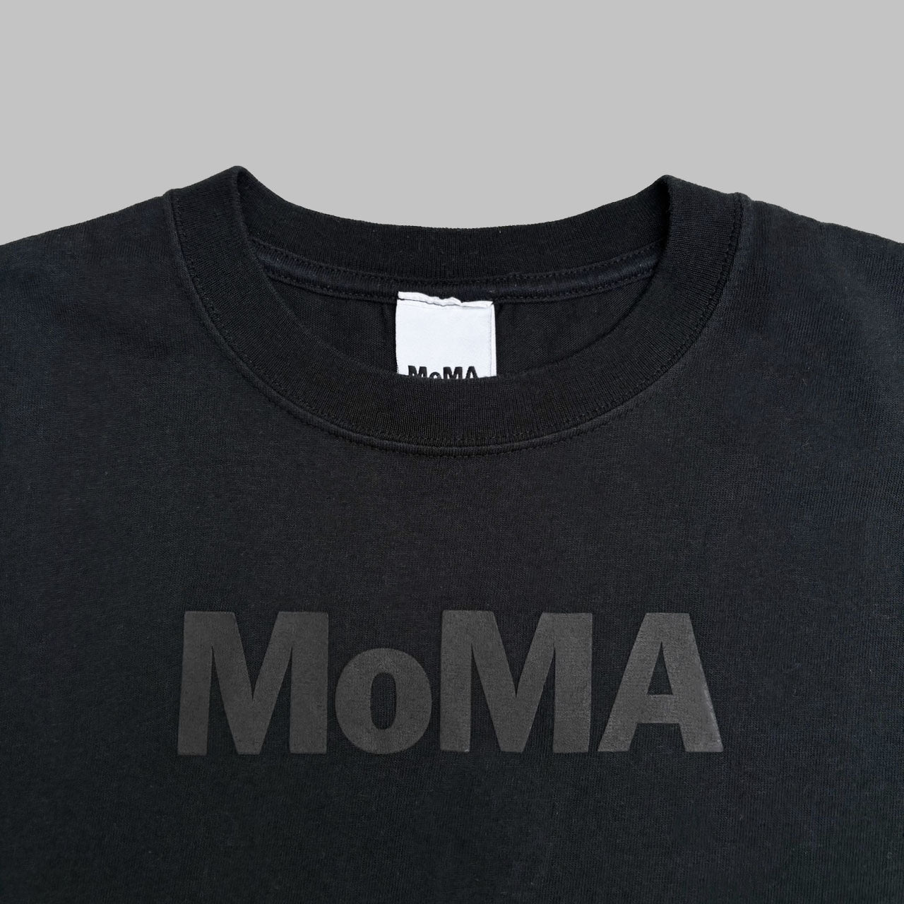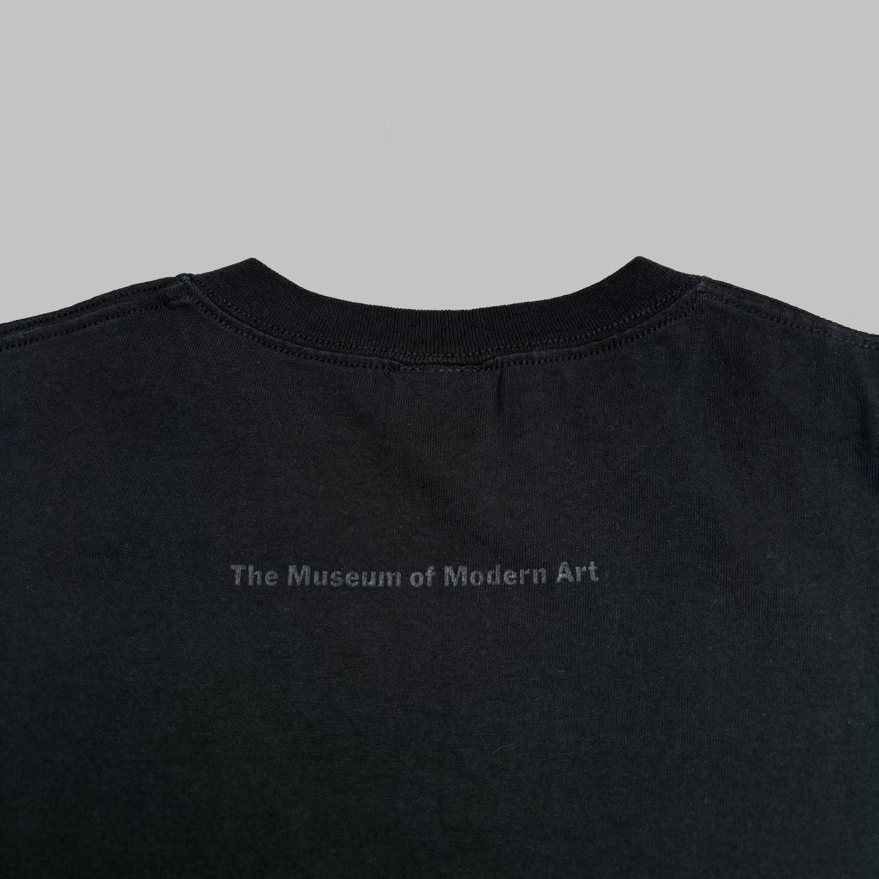 Original early 2000's Museum of Modern Art, New York (MOMA) vintage t-shirt, in black cotton with subtle logo graphic printed in black with puffy ink on the front and upper back. Simple and beautiful.