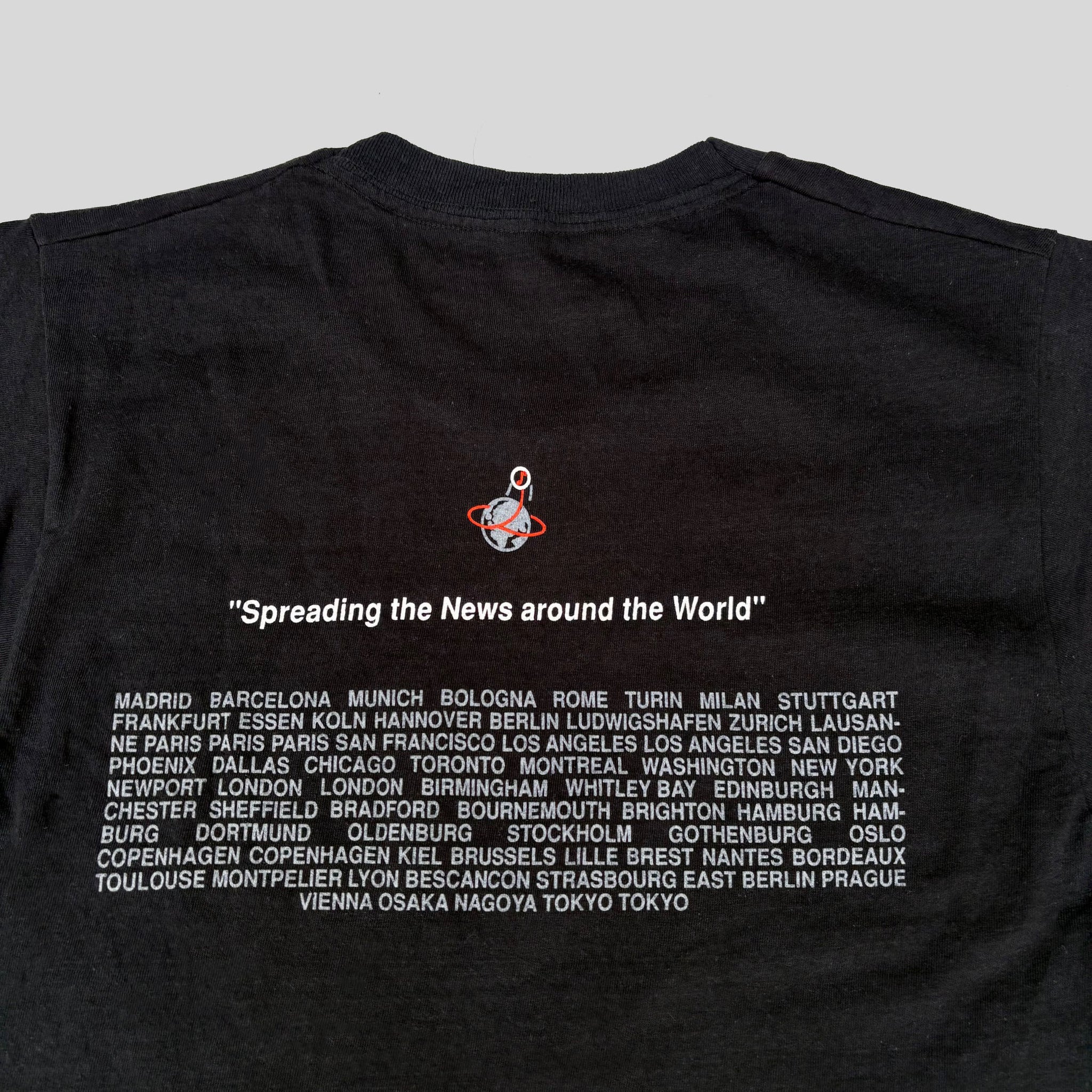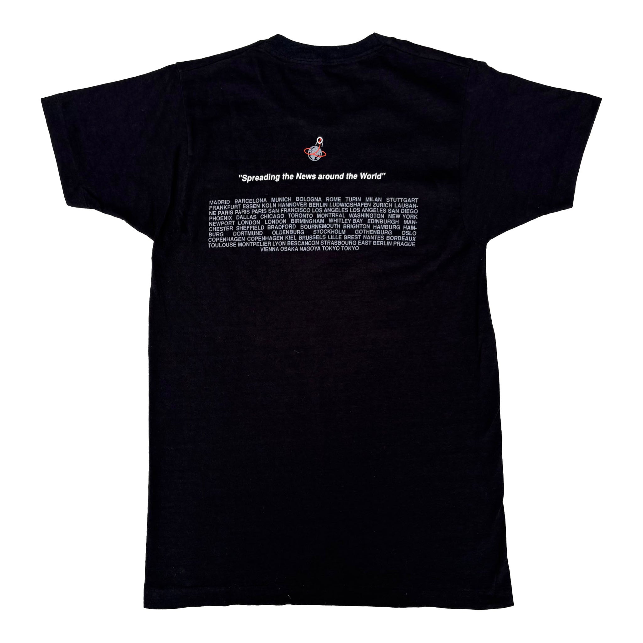 Vintage 1988 Depeche Mode 'Music for the Masses' World Tour t-shirt, Depeche Mode licensed, in black single stitched cotton with graphic printed on the front and 'Spreading the News Around the World' quote and tour dates printed on the back, crazy piece!