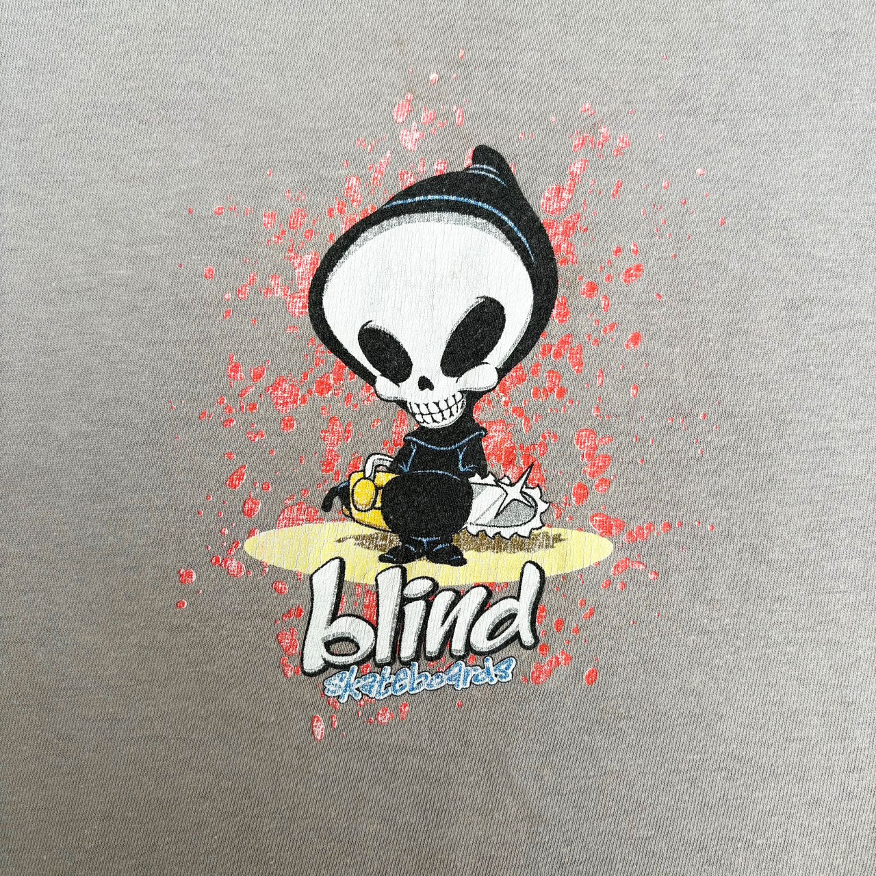 Original early 1990's Blind skateboards vintage t-shirt, in light grey cotton with graphic printed on the chest. Made in USA