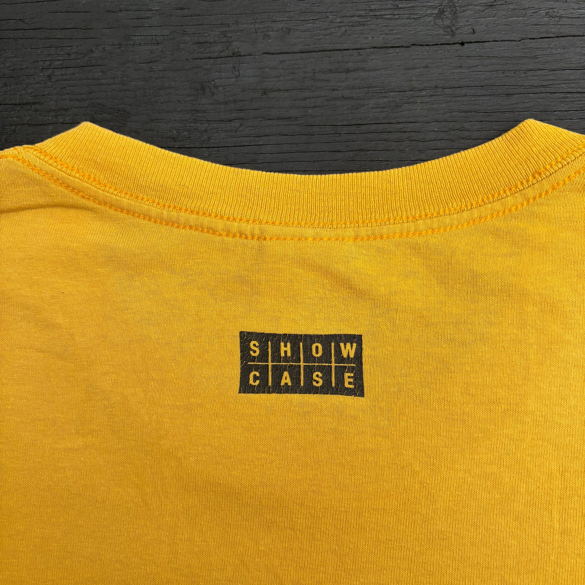 Very rare 2000 Trailer Park Boys television promo vintage t-shirt, Showcase licensed, in yellow cotton with Ricky and Jim Lahey graphic printed on the chest.