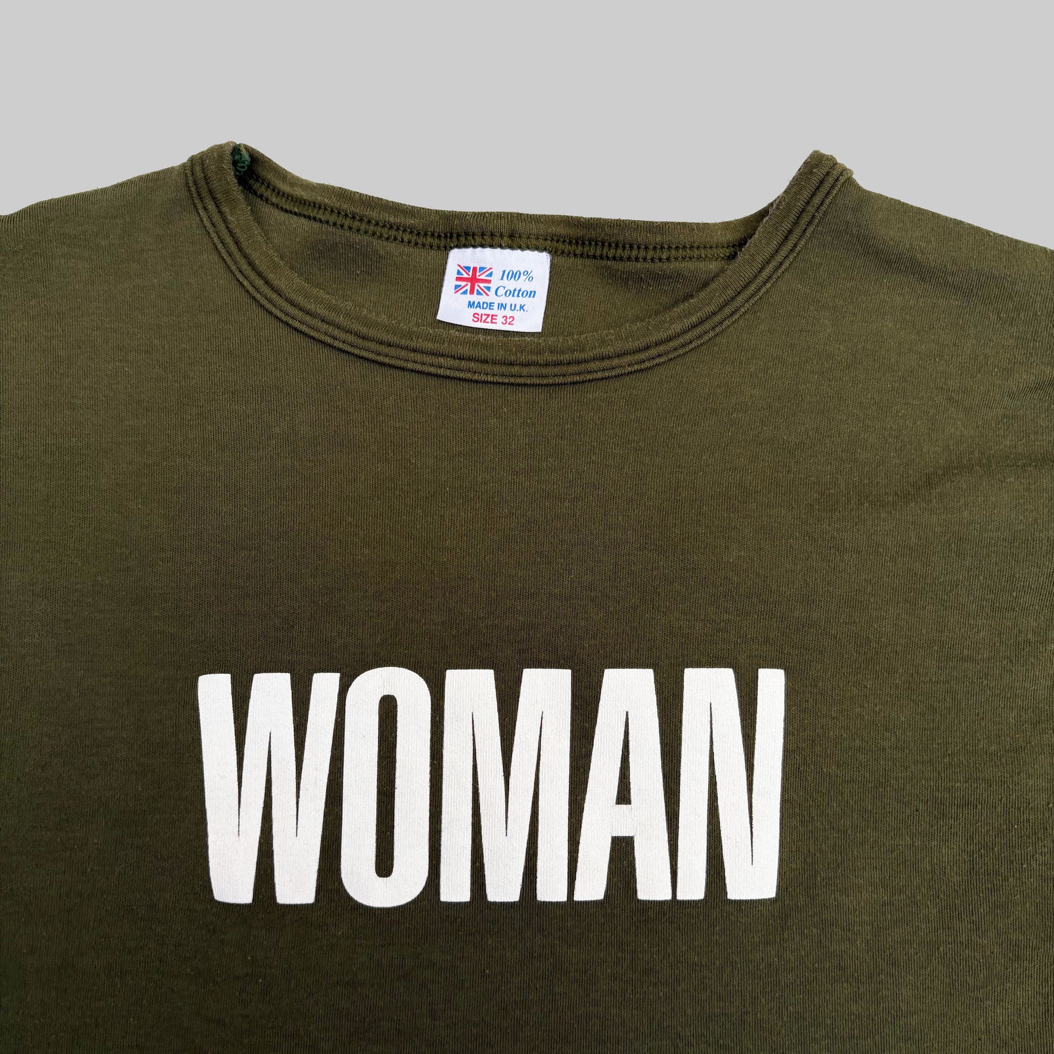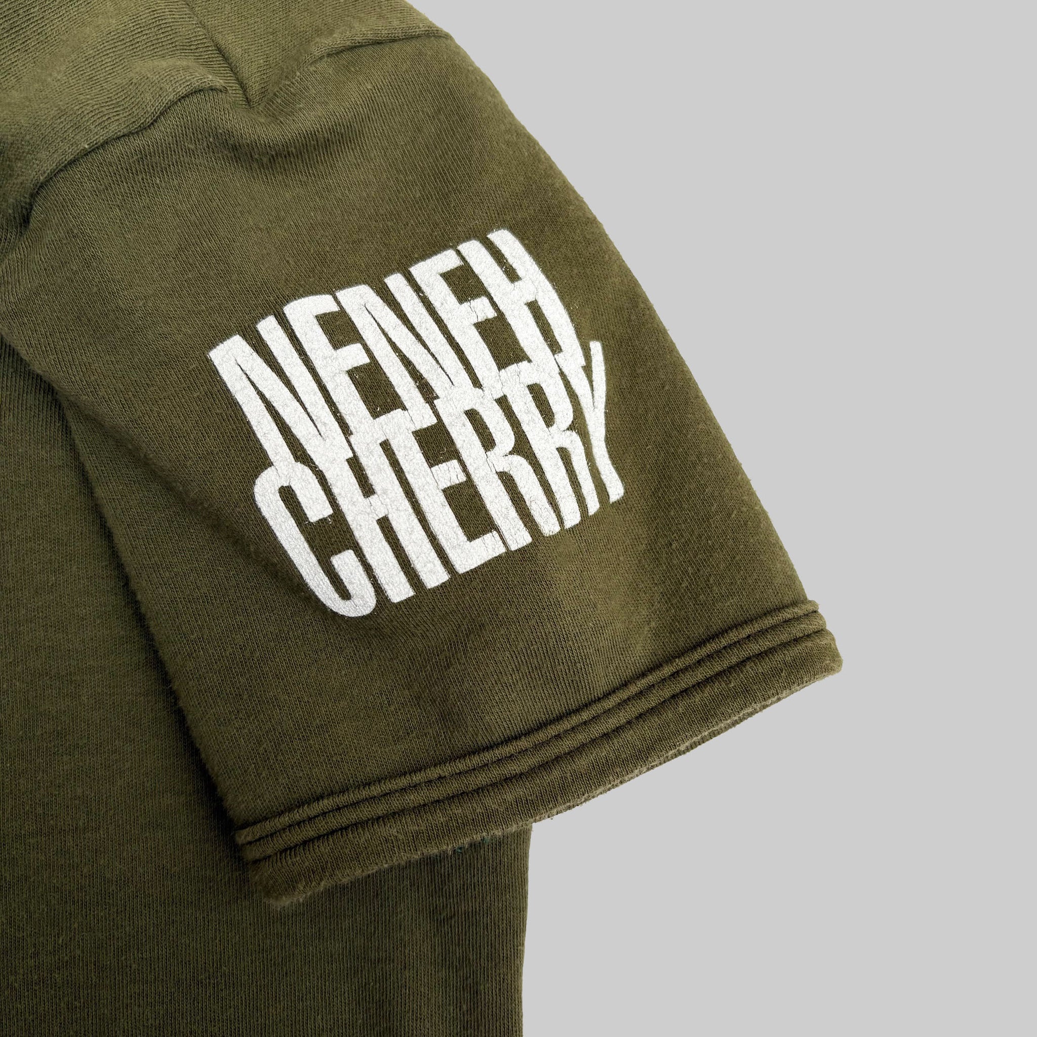 Rare 1996 Neneh Cherry 'Woman' vintage promo t-shirt, in khaki cotton with print on front and on the sleeve. Made in the UK