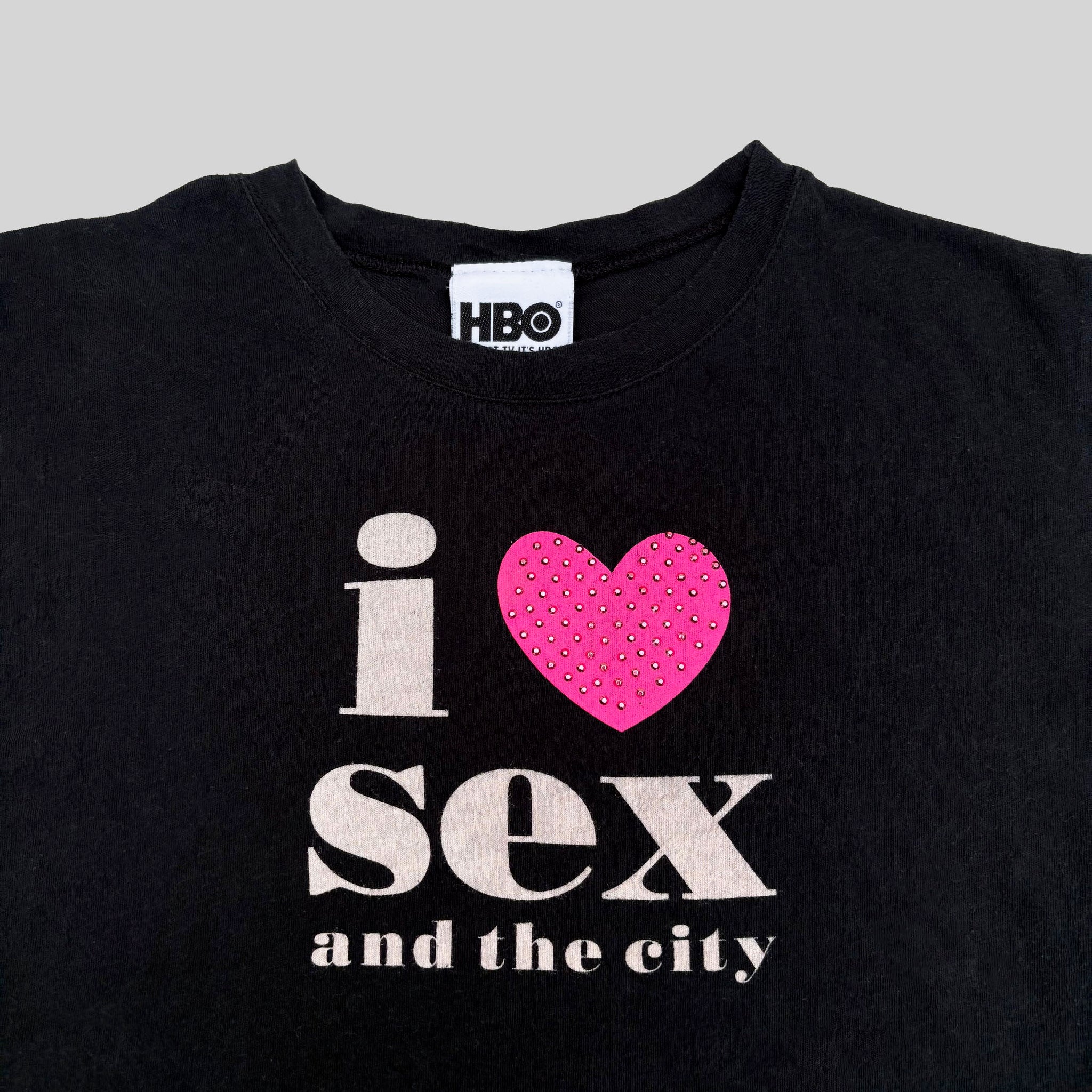 Rare 2004 Sex and the City 'I love Sex' tv series HBO licensed, vintage top t-shirt, in black cotton with graphic printed on the front.