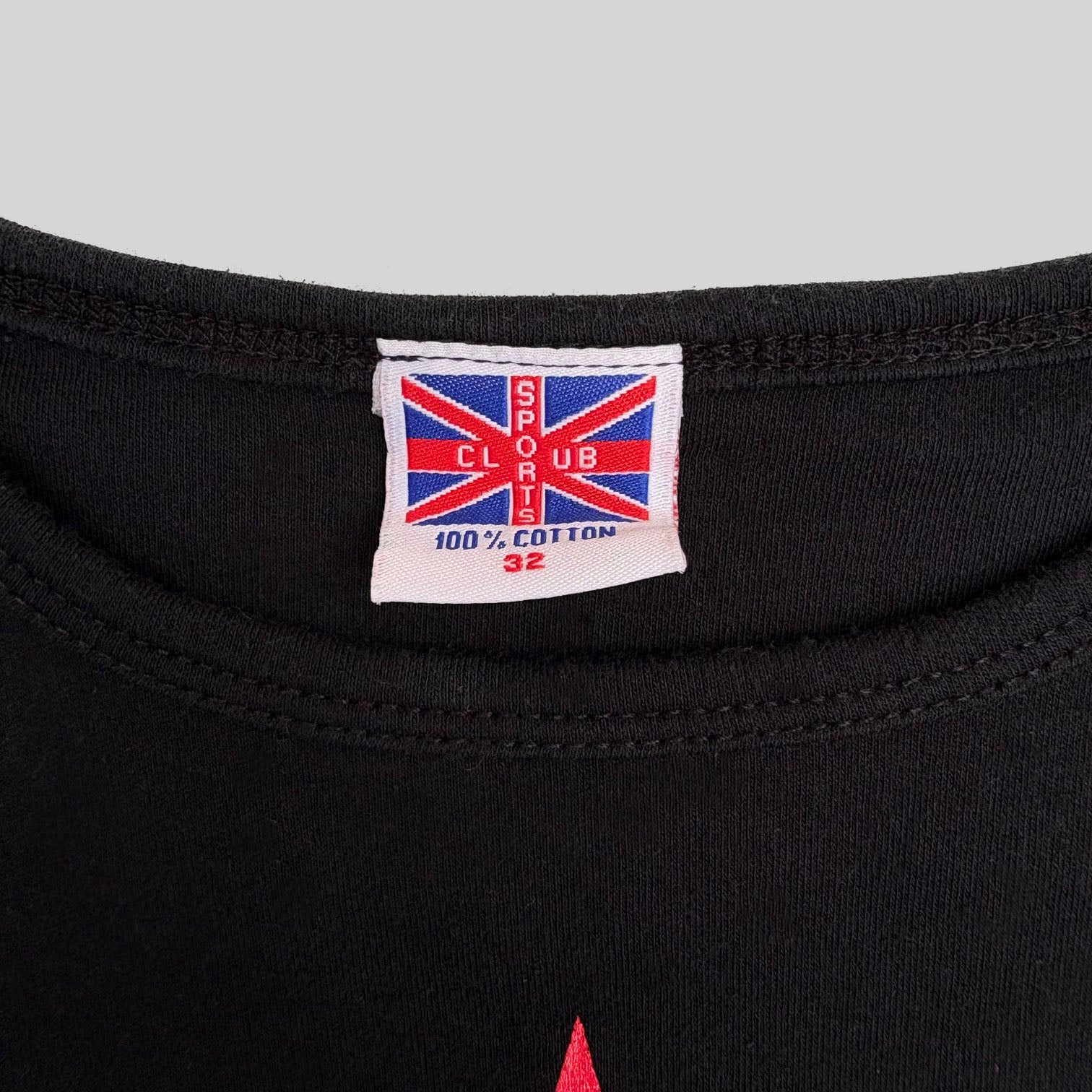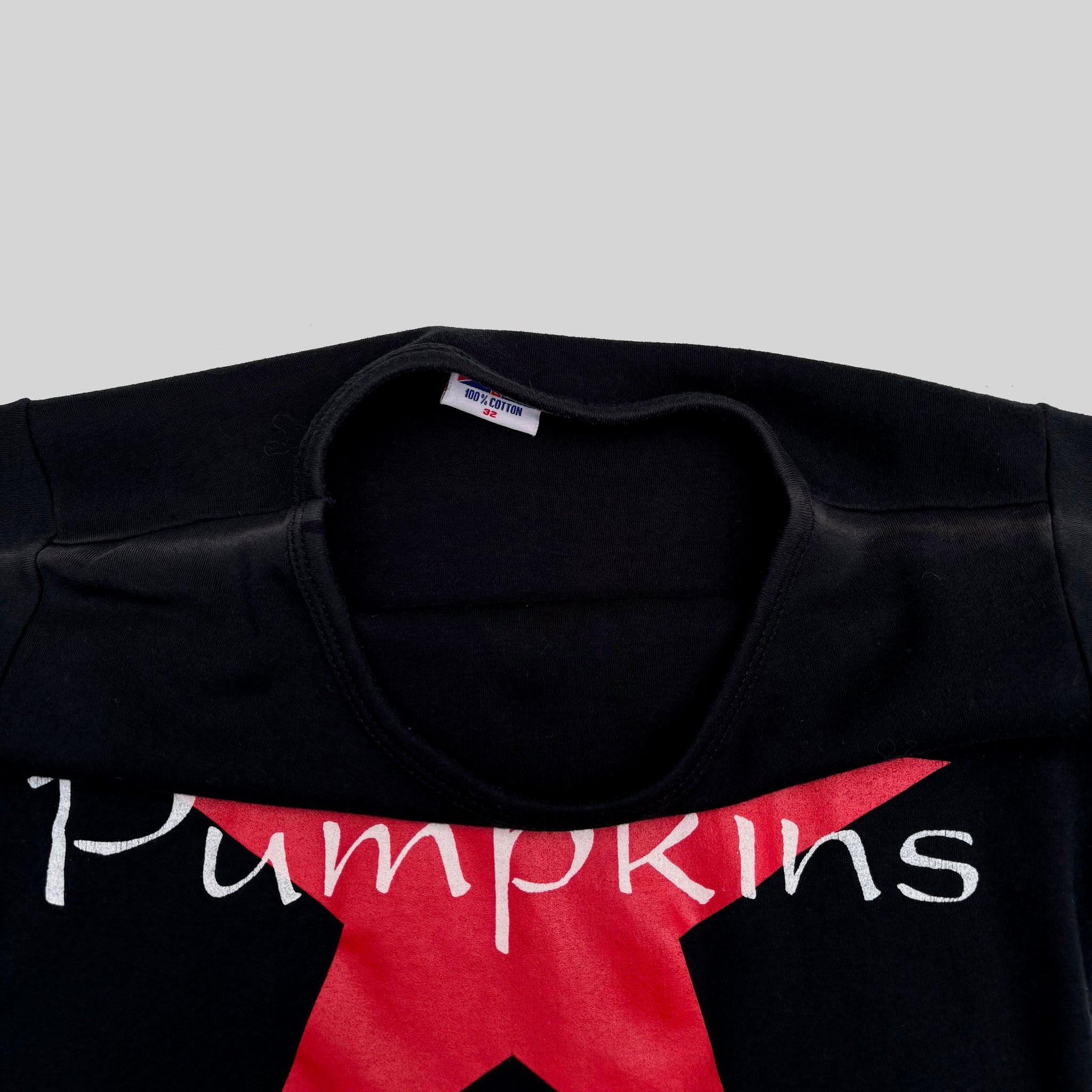 Rare late 1990's Smashing Pumpkins vintage band top t-shirt, in black cotton with band graphic logo with red star printed on the front.