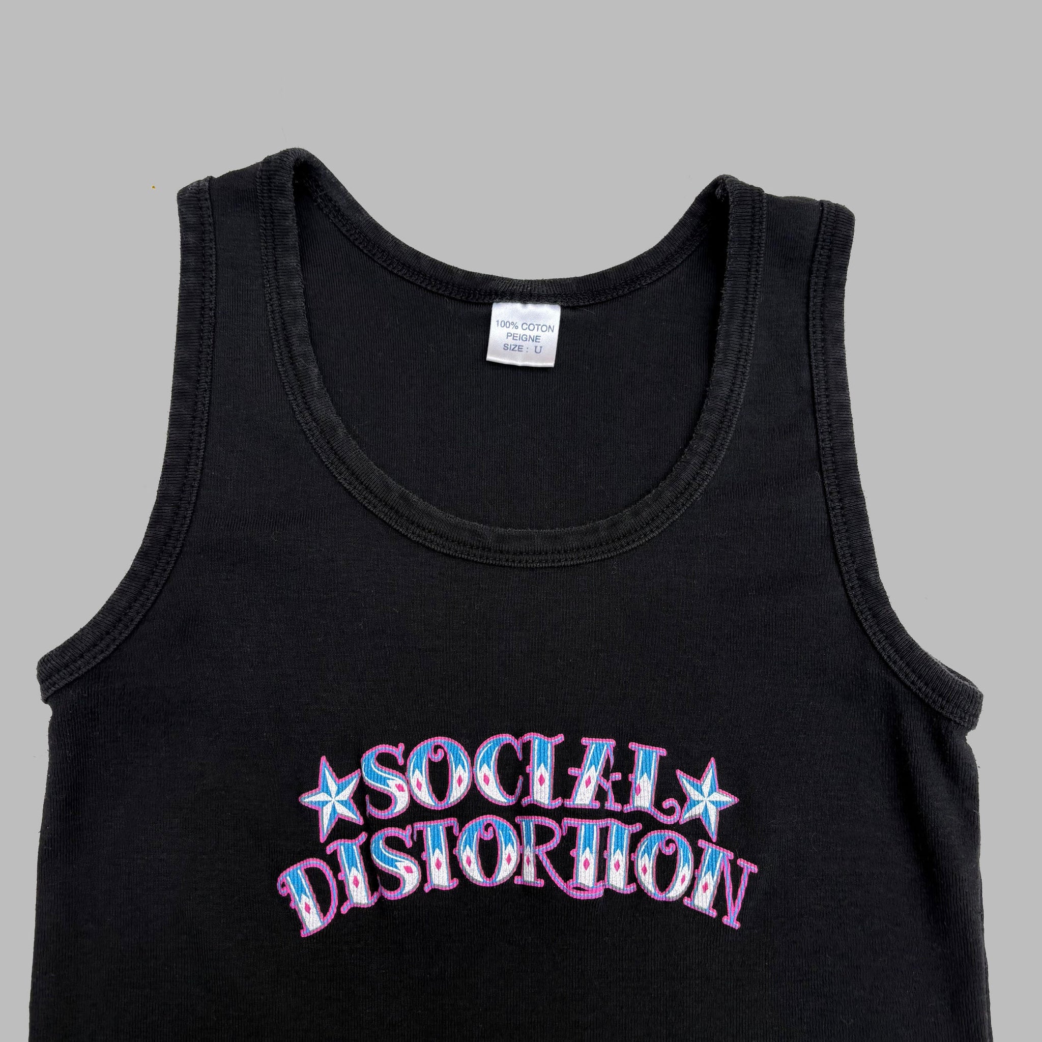 Original late 1990's Social Distortion vintage girl band tank top, in black stretch cotton with graphic printed on the chest.