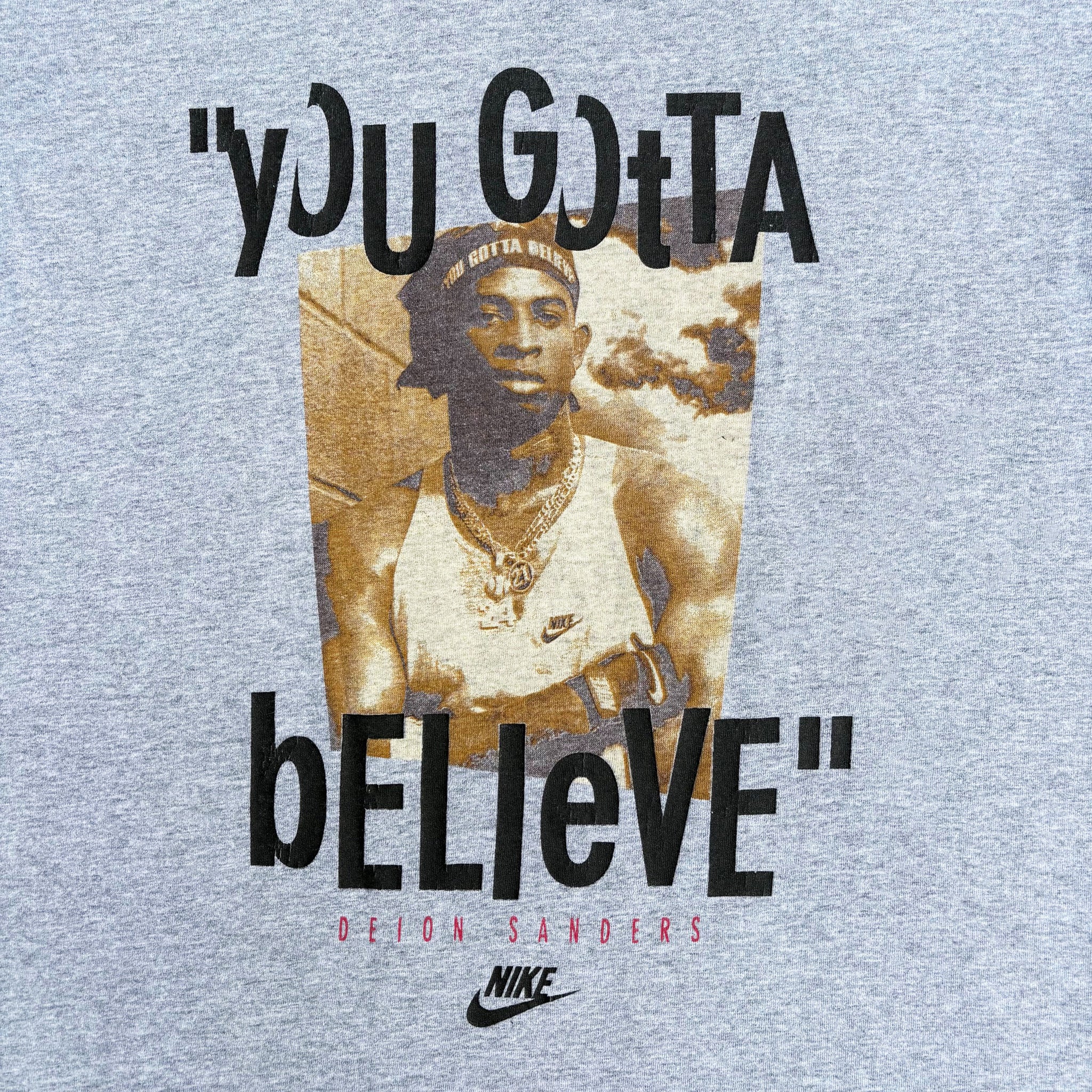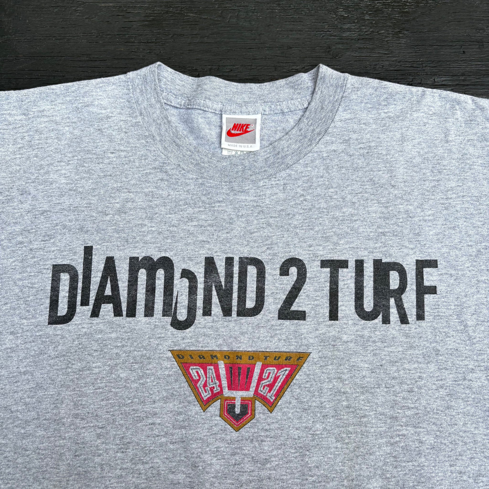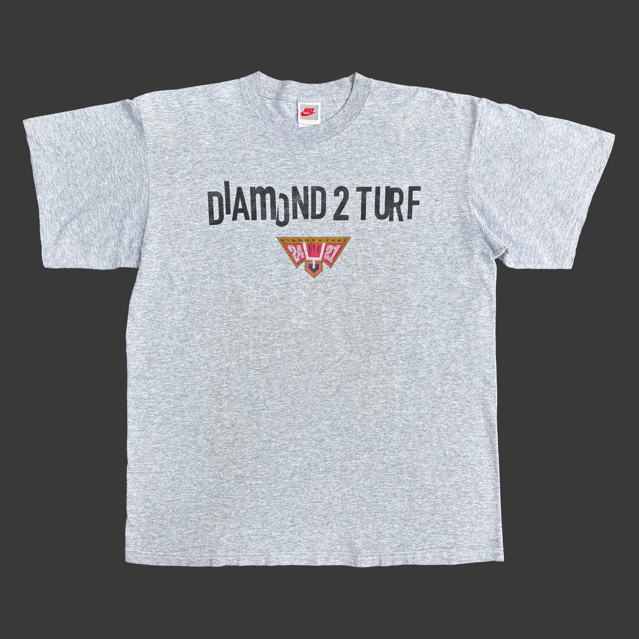 Original 1990's Nike 'Diamond 2 Turf' Deion Sanders vintage t-shirt, in heather grey single stitched cotton with graphic printed on the front and on the back. Made in USA