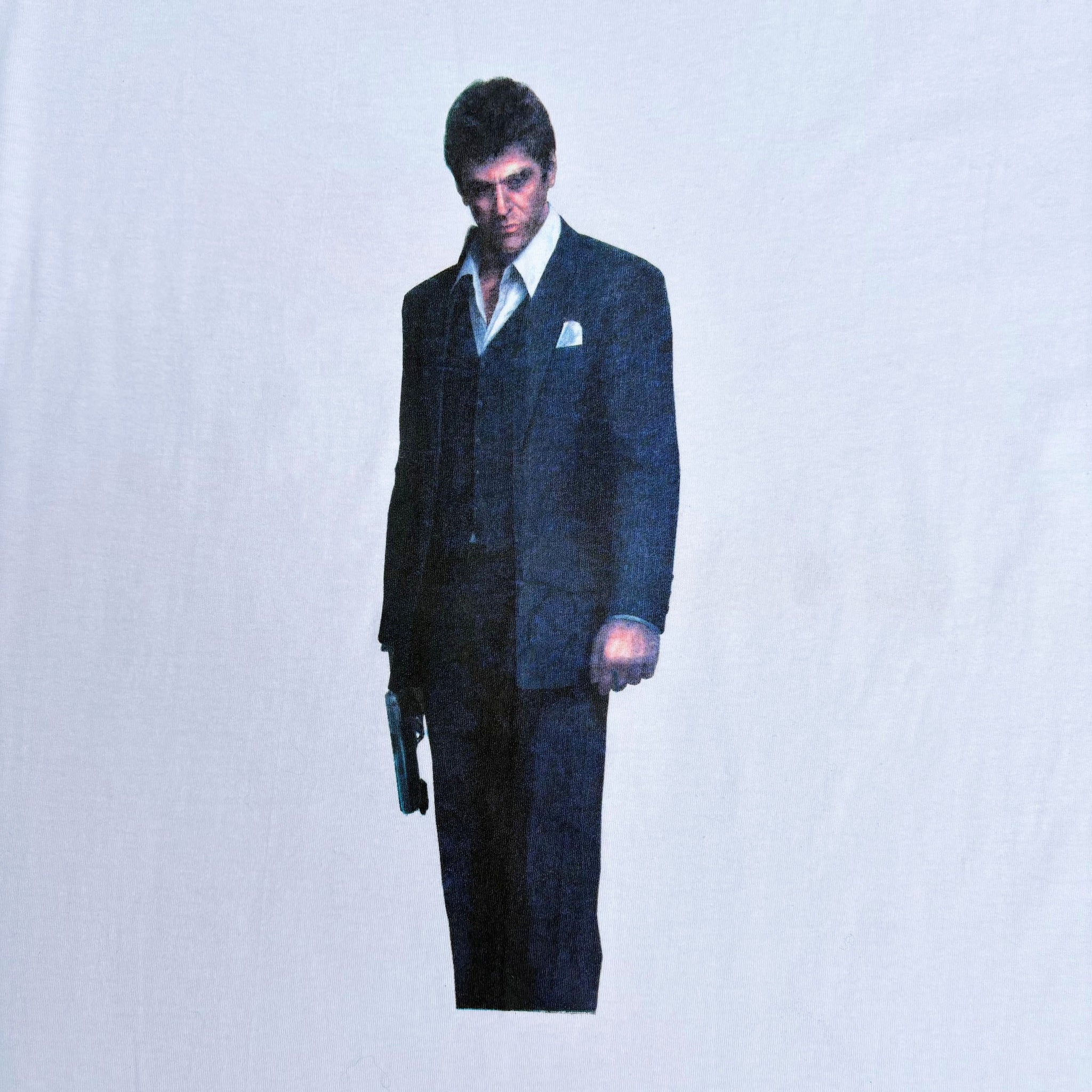 Original 2006 Scarface The World is Yours, Playstation 2 vintage video game promo t-shirt, in white cotton with graphic printed on the chest and back.
