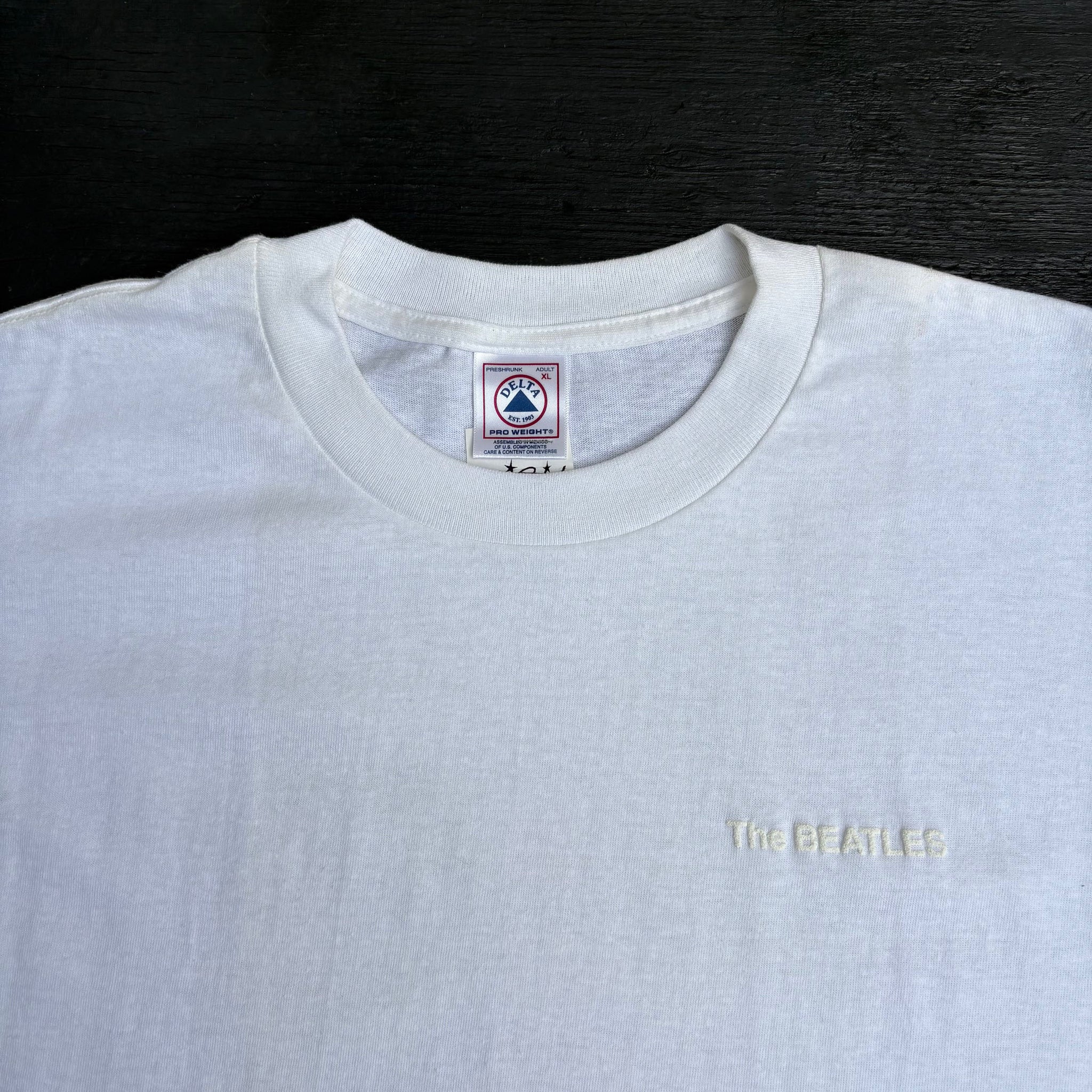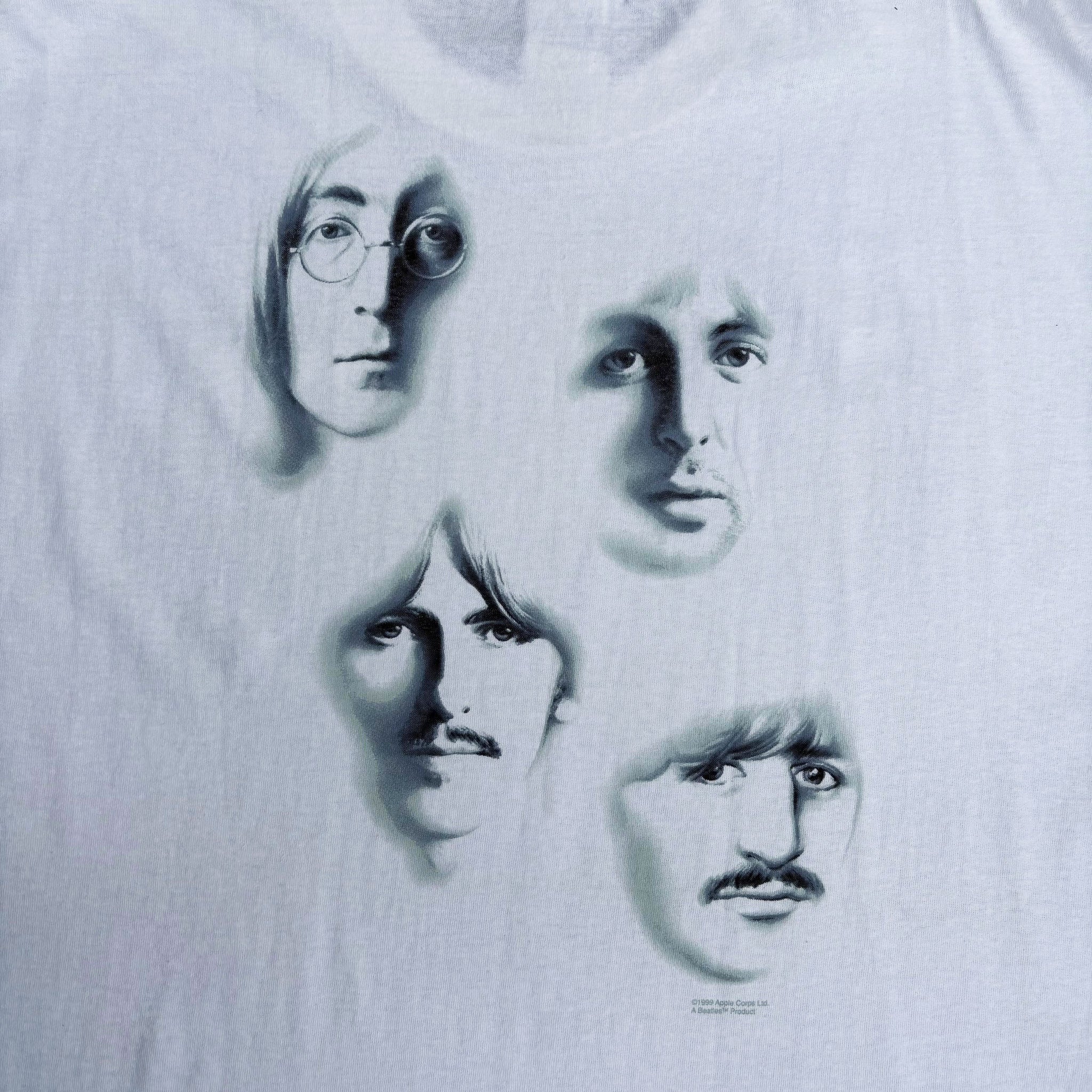 Crazy, original 1999 The Beatles band vintage t-shirt, Apple Corps Ltd licensed, in white cotton with graphic printed in white puffy ink on the chest and superb graphic on the back. Very rare shirt.